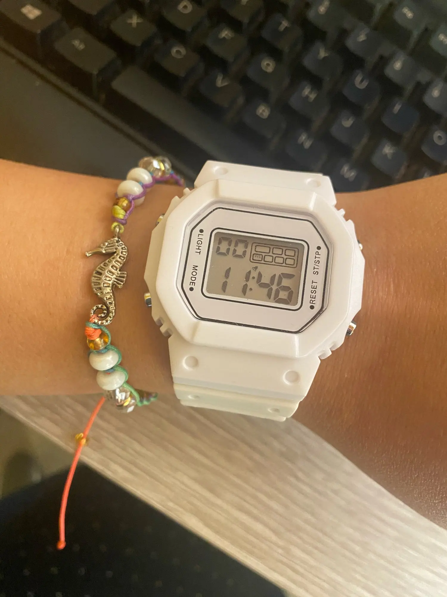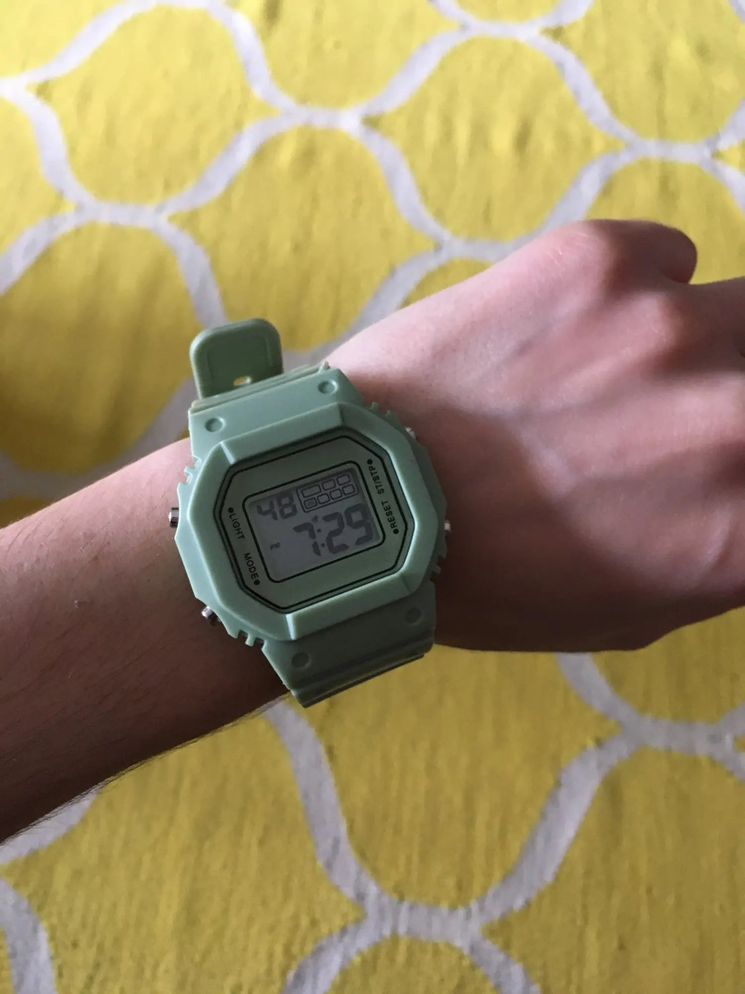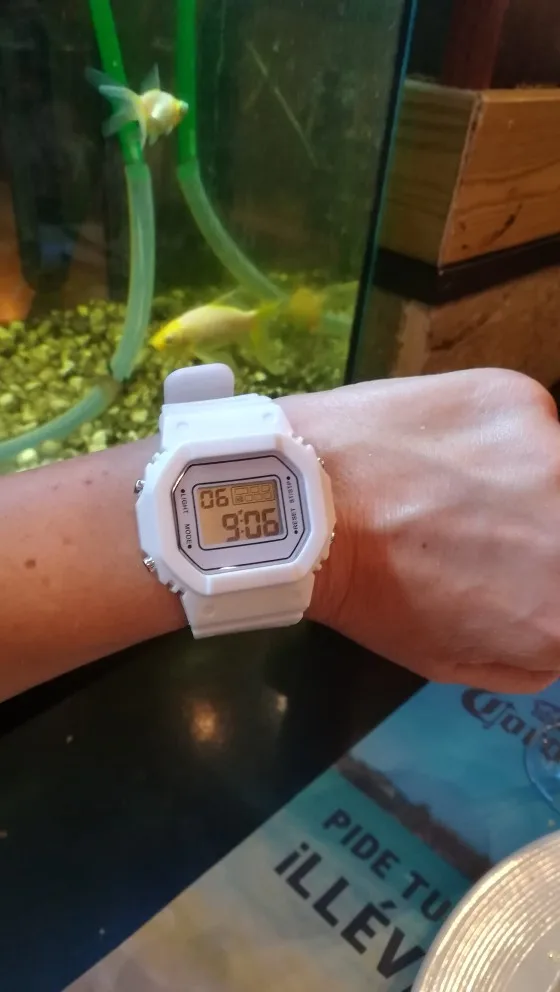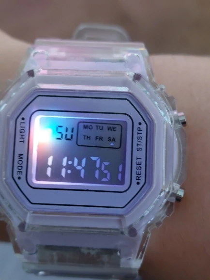 this watch is really good for the price! there is one problem, it says the wrong day (the watch makes it one day ahead e.g. its Friday but the watch says saturday) and its a little bit bulky but for the price it's really cool! there's a stopwatch and an alarm too!!