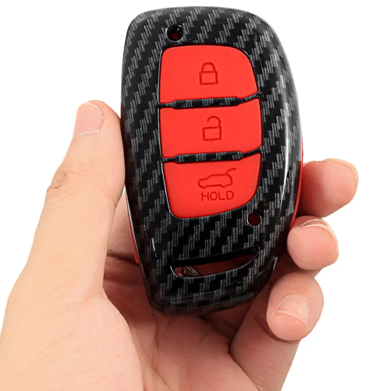 Новый чехол из углеродного волокна + силиконовый чехол для ключей от машины для Hyundai Verna Sonata Elantra Tucson Auto Creta I10 I20 Santa Fe 2016 2017 2018