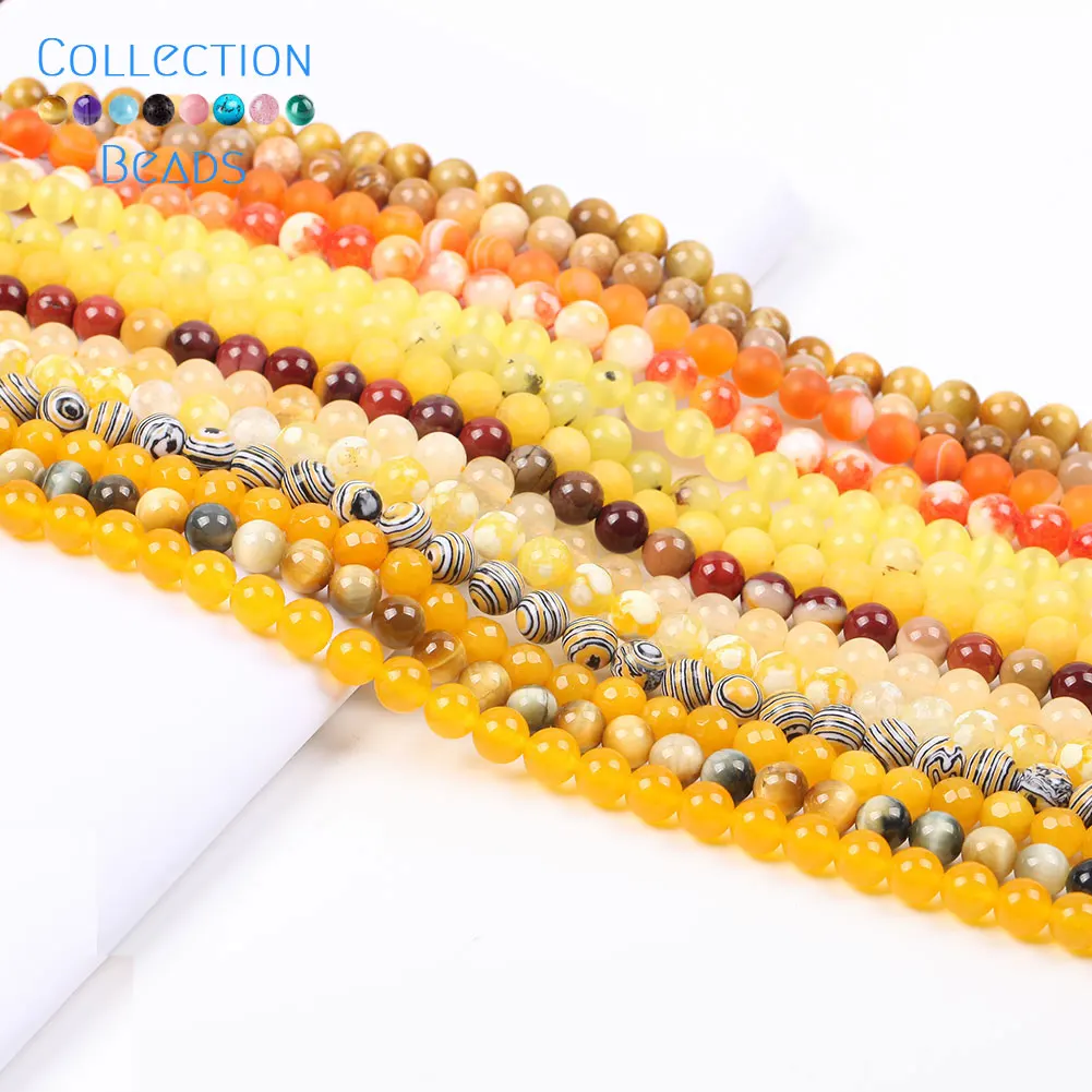 Натуральный камень, желтый кристалл Jades Jaspers Агаты Янтарный распорка Свободные Круглые бусины для самостоятельного изготовления ювелирных изделий Аксессуары оптом 15"