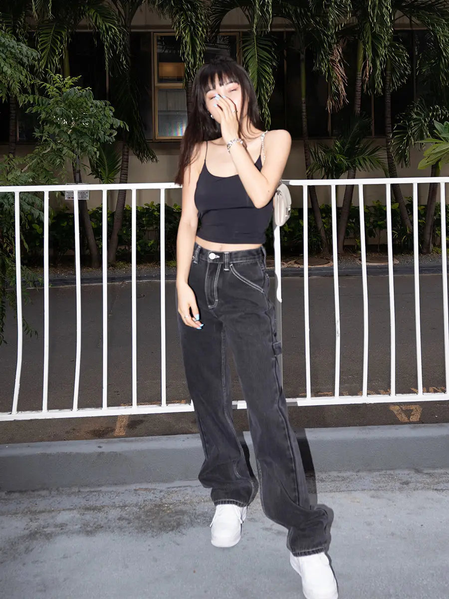 Новинка 2021, женские джинсы, джинсовые брюки с высокой талией, одежда, широкие джинсы, прямые брюки, винтажные мешковатые Универсальные женские длинные брюки