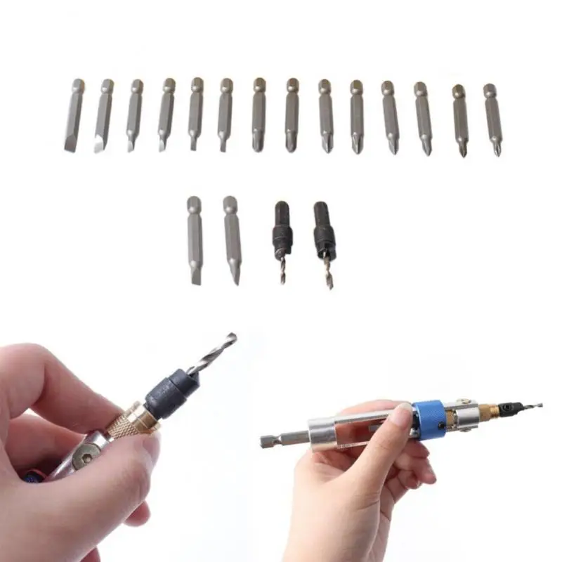 Размер коробки: 195*44*75 ммКонфигурация продукта:Одно сверло с двойной головкой8 поперечных головок (2 для pH0, Ph1, pH2 и PH3)8 штук шлицевая головки (2 шт. 1 / 8 "3,2 мм, 2 шт. 5 / 32" 4 мм, 2 шт. 3 / 16 "4,8 мм, 2 шт. 1 / 4" 6,3 мм)2 дрели с утопленной головкой Нью-Йорк (3 / 32 "2,4 мм, 1 / 8" 3,2 мм)Один шестигранный ключ1 желтая выдувная формовочная коробка