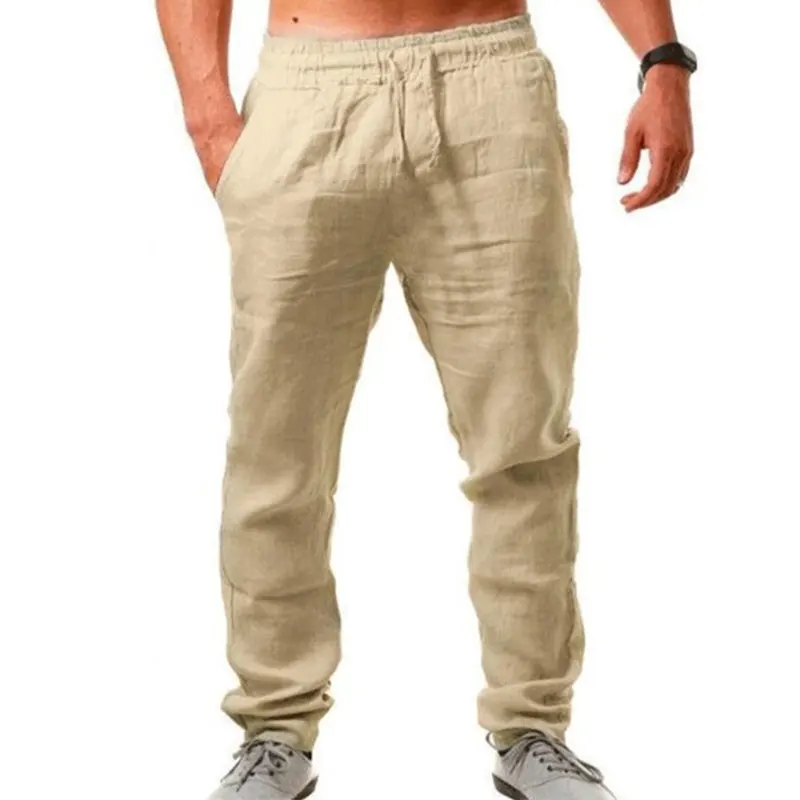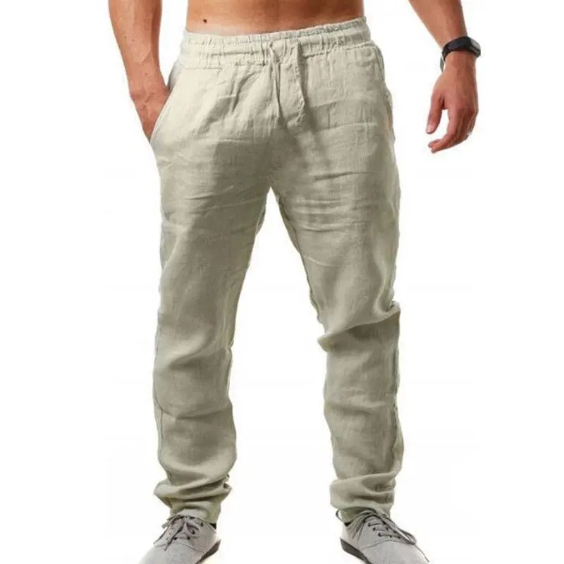 2021New мужские хлопковые льняные брюки мужские летние дышащие одно...