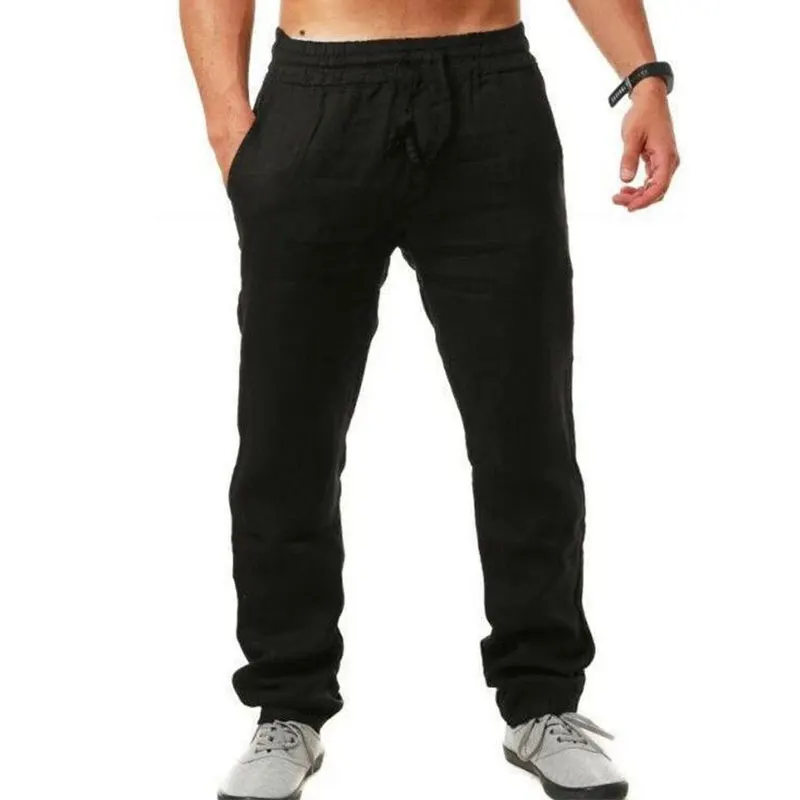 Брюки мужские из хлопка и льна, дышащие однотонные, для фитнеса, ул...