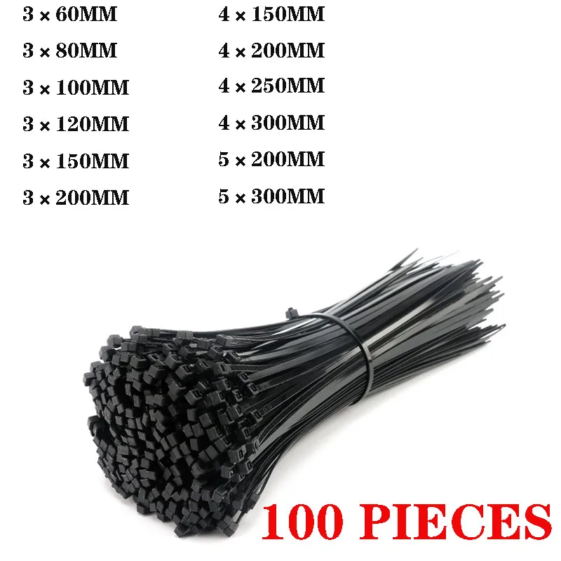 Самоблокирующаяся пластиковая нейлоновая кабельная стяжка 100 штук черного цвета 5x300 кабельная стяжка Крепежное кольцо 3x200 промышленная кабельная стяжка набор кабельных стяжек