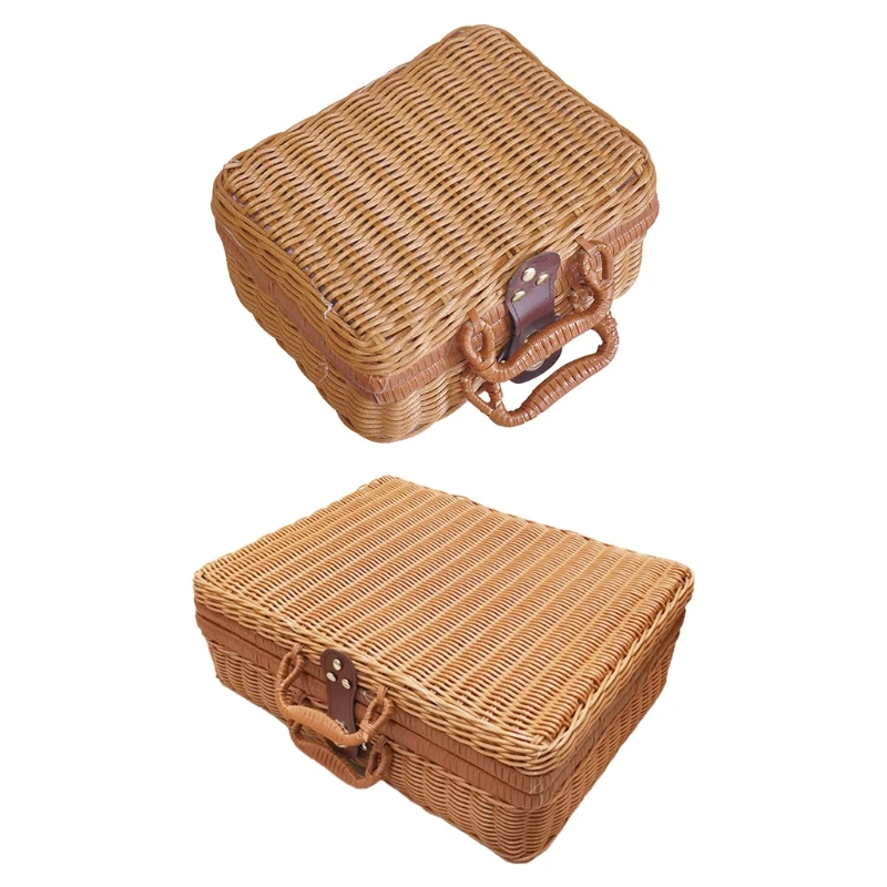 Ротанговая Корзина для пикника на открытом воздухе чемодан для хранения в стиле кантри корзина с двойной ручкой качественная корзина для хранения фруктов