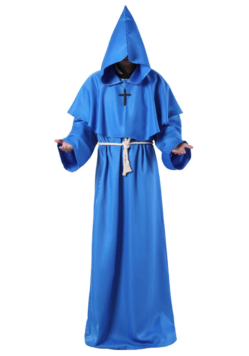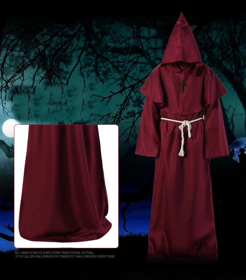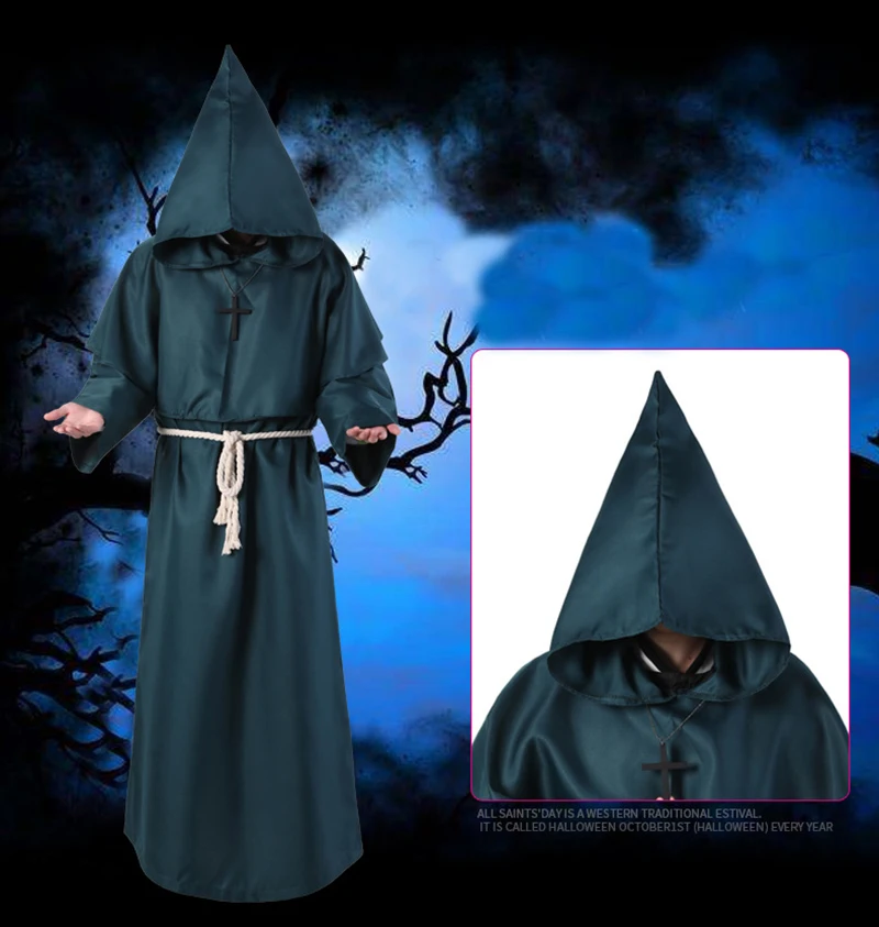 Новый костюм волшебника маскарадный костюм на Хеллоуин; Платье средневековой; Халат с капюшоном; Монах монах халат костюм священника Древняя китайская одежда ханьфу Christian костюм