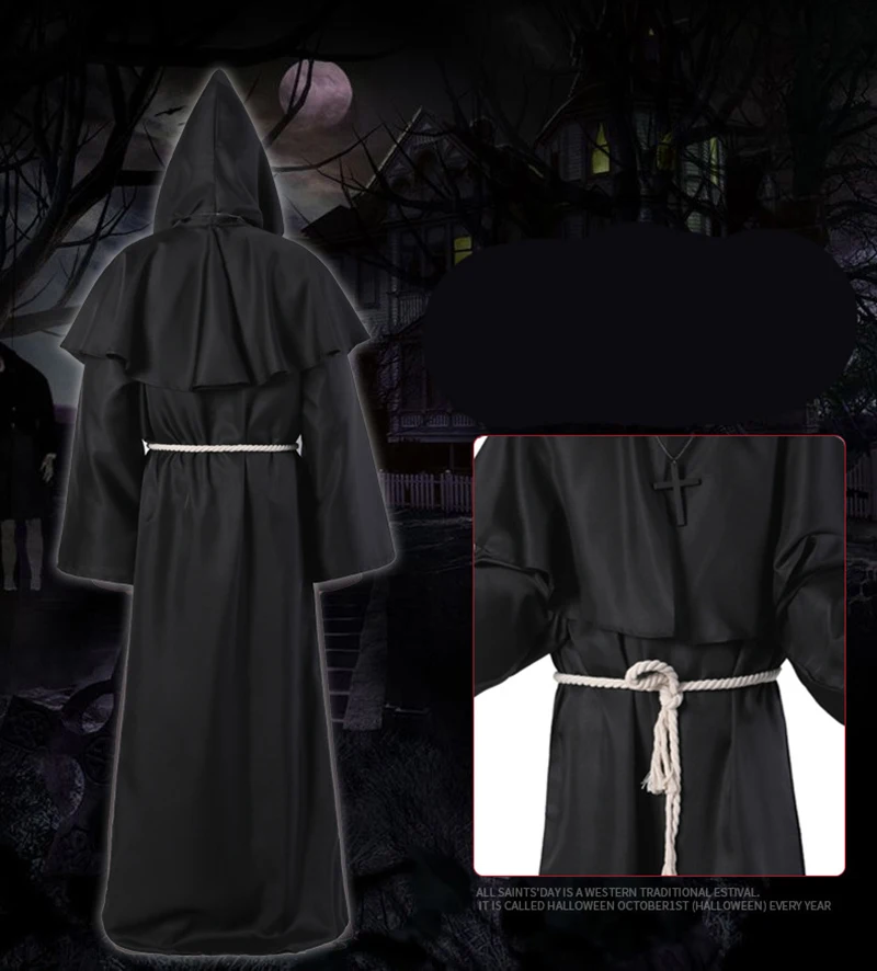 Новый костюм волшебника, костюм для косплея на Хэллоуин, средневековый Халат с капюшоном, монах, фриар, женская одежда, христианский костюм