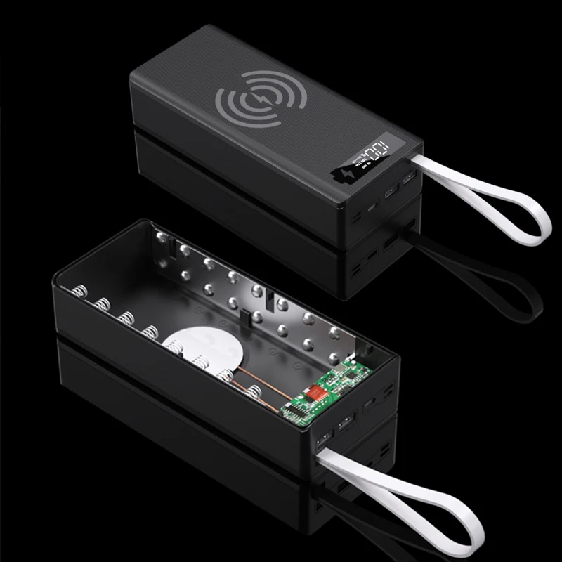 Зарядное устройство 16*18650, чехол сделай сам с двумя USB-портами и ЖК-дисплеем, поддержка быстрой и беспроводной зарядки, корпус аккумулятора, коробка для хранения