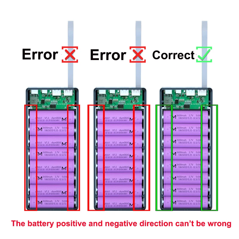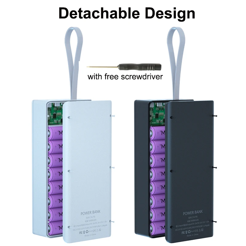 Съемный корпус аккумулятора QC3.0 PD с ЖК-дисплеем, 16x18650, 10 Вт
