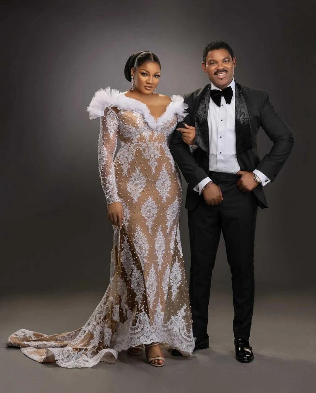 Роскошное вечернее платье с юбкой годе из Дубая, украшенное бусинам...