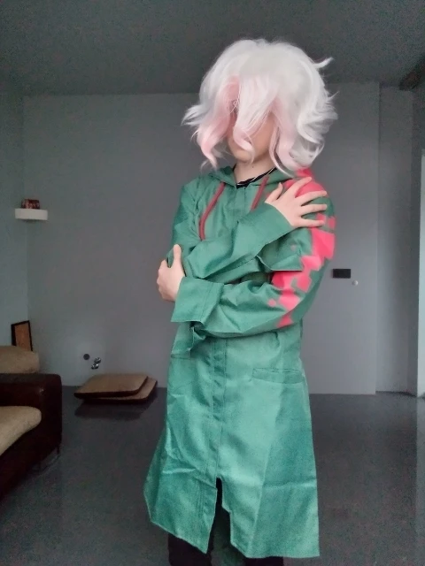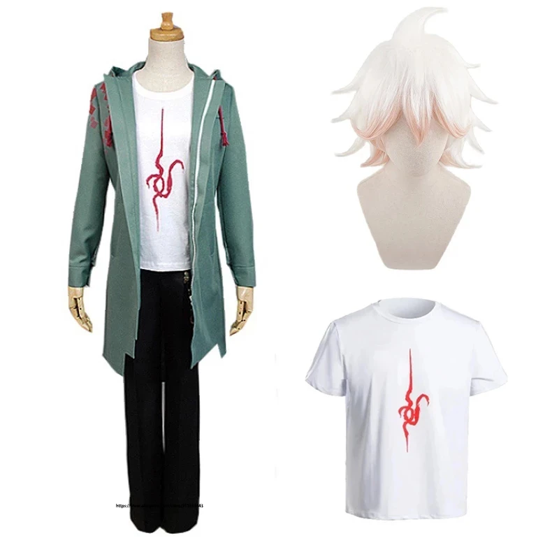 Костюм для косплея Komaeda Nagito, супер данганронпа, мужская куртка, футболка, армейский зеленый Тренч, повседневное пальто на Хэллоуин, парик для косплея