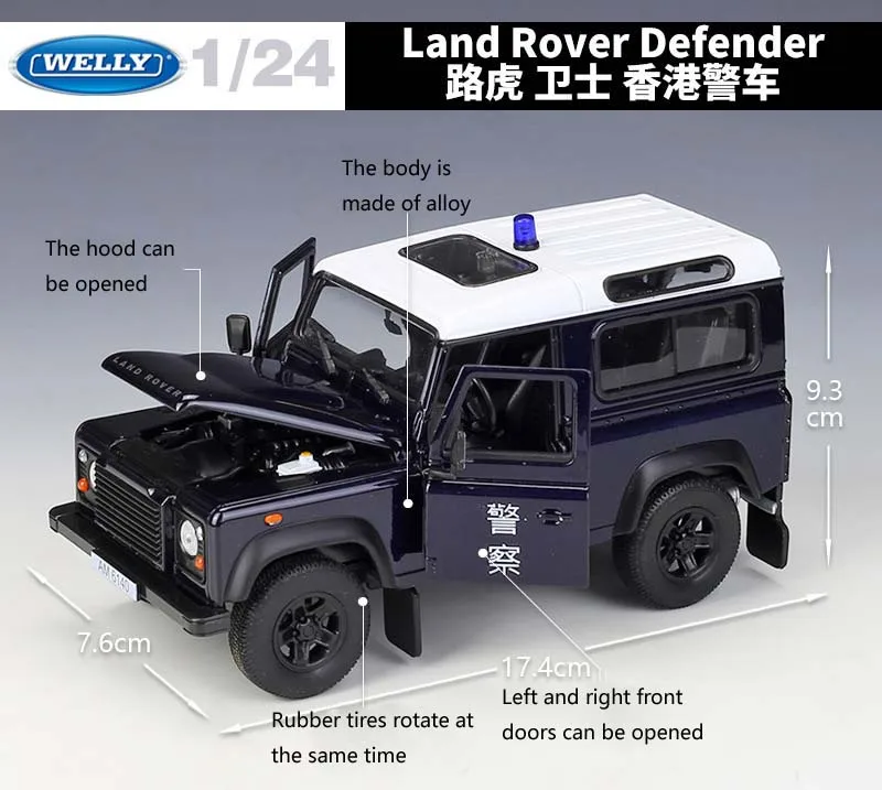 Литой автомобиль WELLY 1:24 Land Rover Defender классический внедорожник полицейский автомобиль металлический сплав игрушечный автомобиль модель автомобиля для детей Коллекция подарков