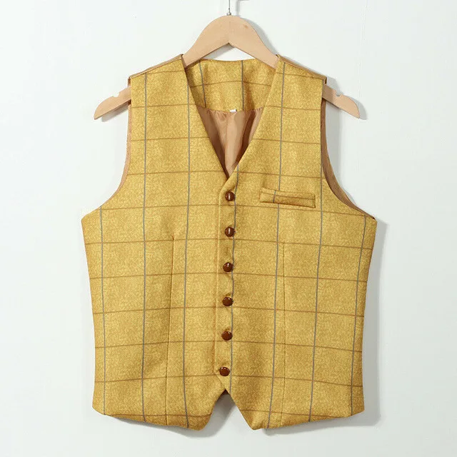 Мужской жилет, однобортный, желтый, серый, приталенный пиджак с V-образным вырезом, деловая Мужская одежда, жилет для делового костюма