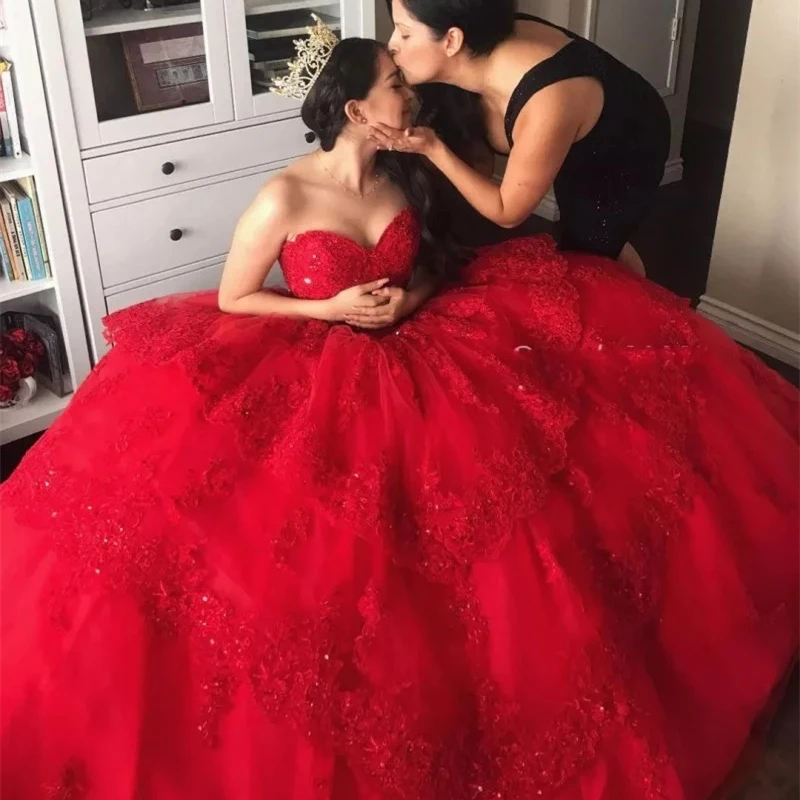 Красный Милая Quinceanera платья 2021 без рукавов с кружевной аппликацией, с блестками; Праздничное платье принцессы; Вечерние сладкий 16 бальное платье с низким вырезом на спине