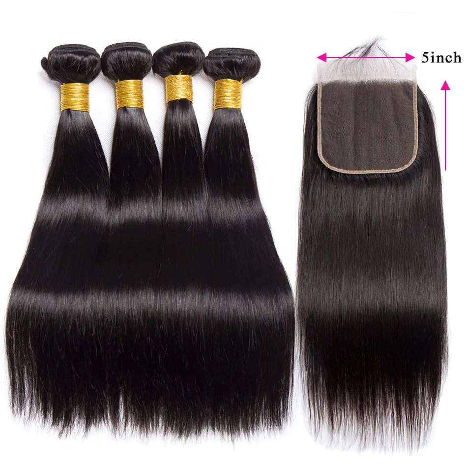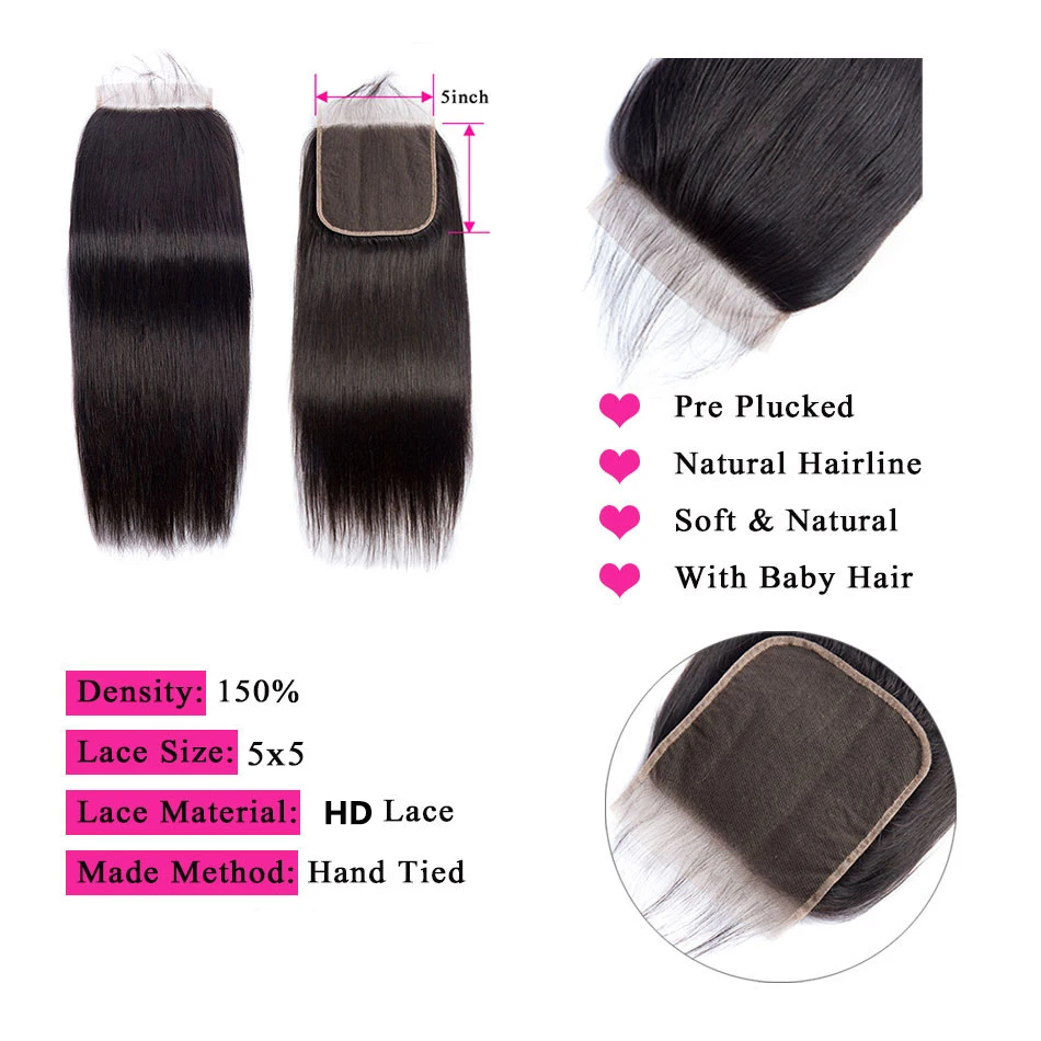 Alibele 30 дюймов длинные волосы пряди с закрытием бразильские прямые волосы пряди с 5x5 HD Кружева Закрытие Волосы Remy и 4x4 laceClosure