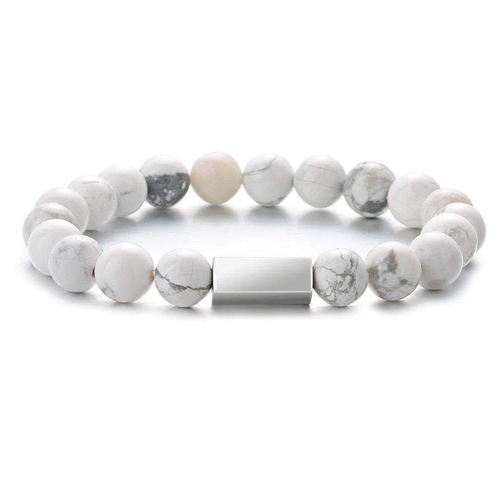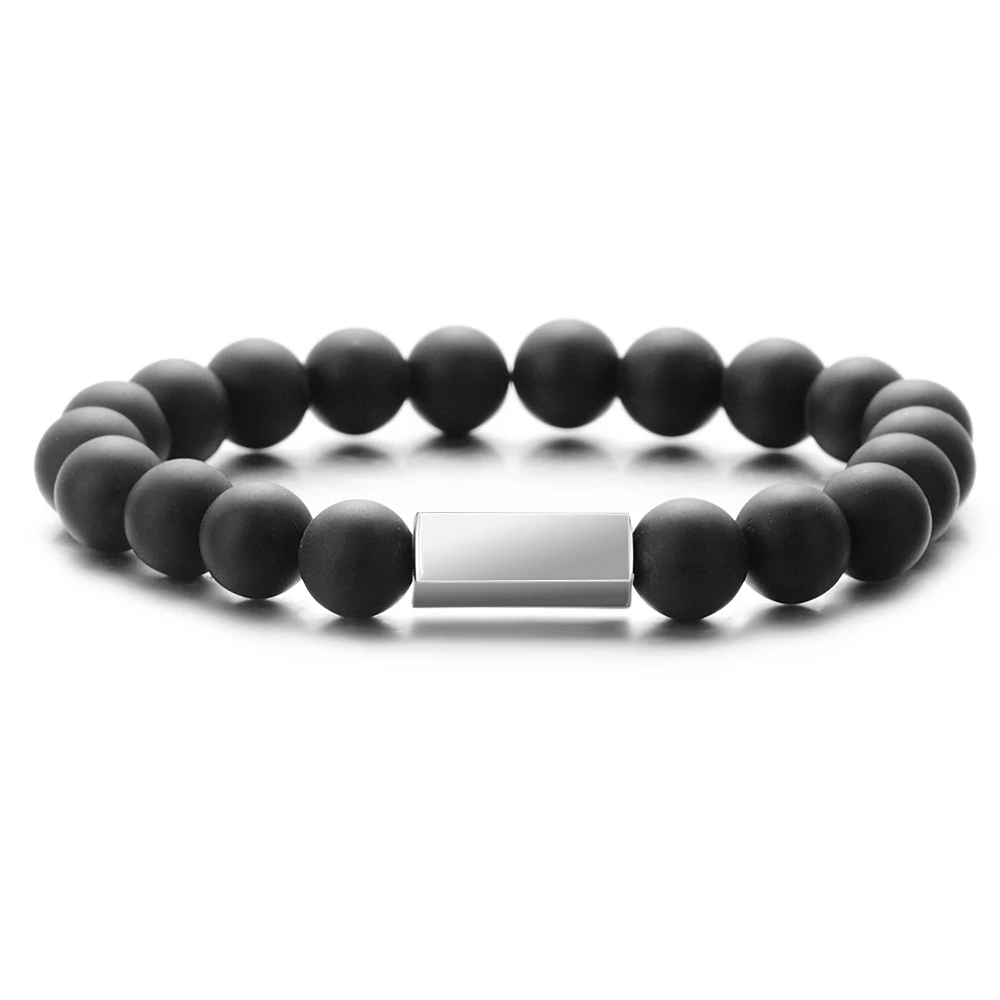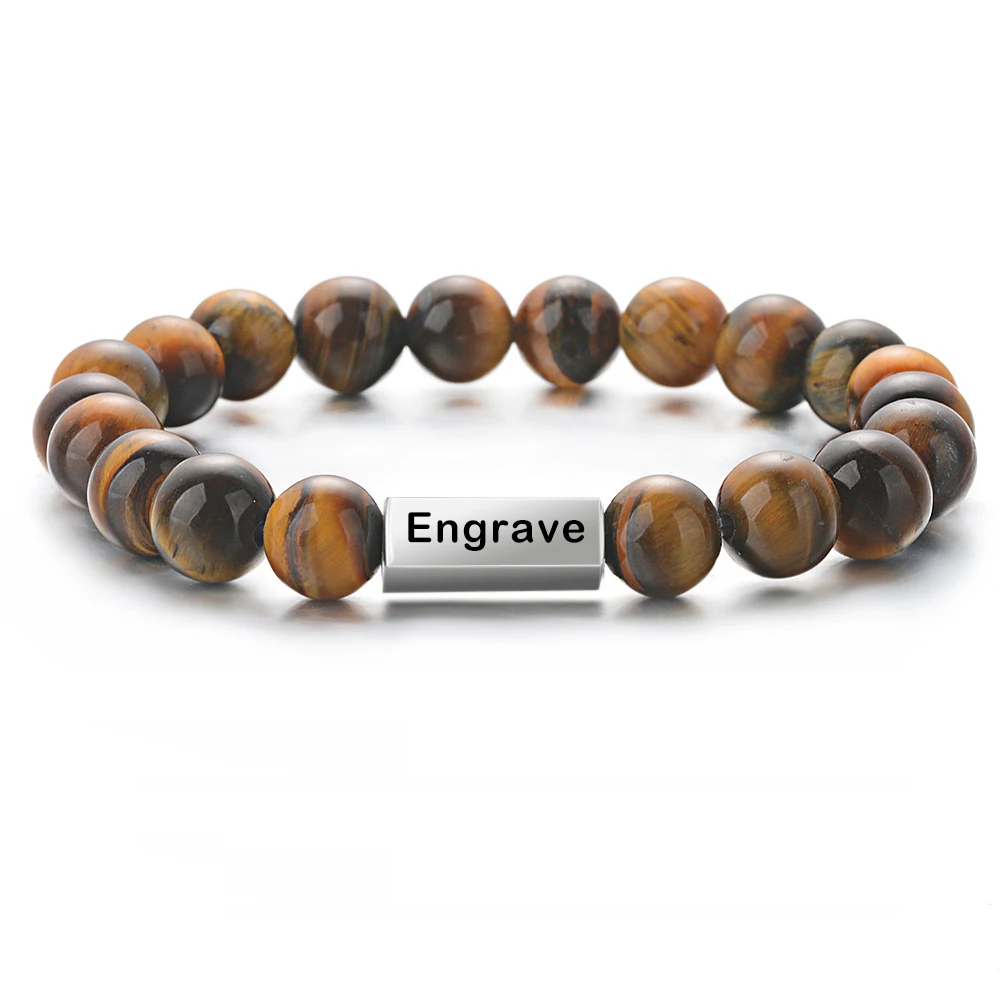 Натуральный камень бусина, жесткий браслет из нержавеющей стали, пользовательские лазерной гравировки букв Дата фамилия браслет для мужчин и женщин Любители ювелирных изделий подарки