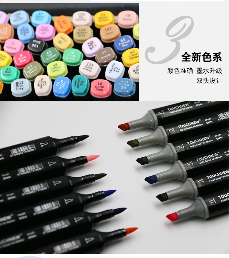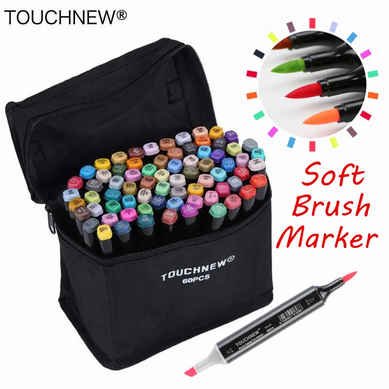 TOUCHNEW 80 Цвета мягкой щеткой Маркеры Ручка Двойные наконечники н...