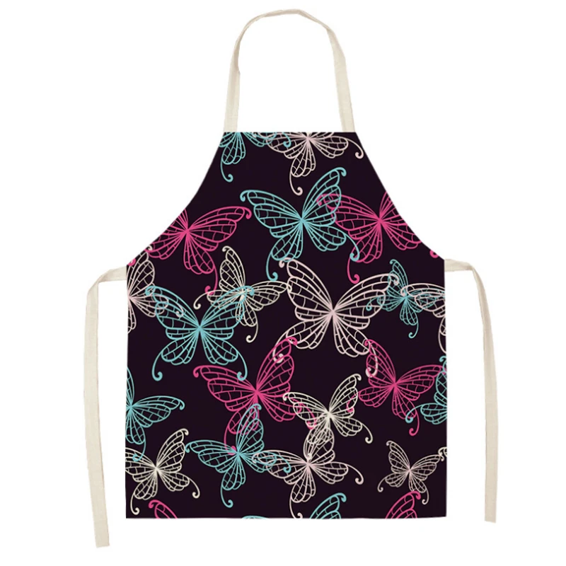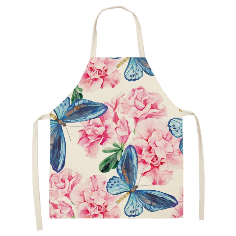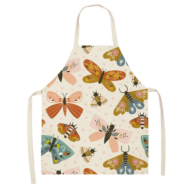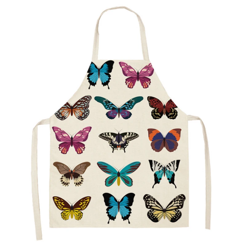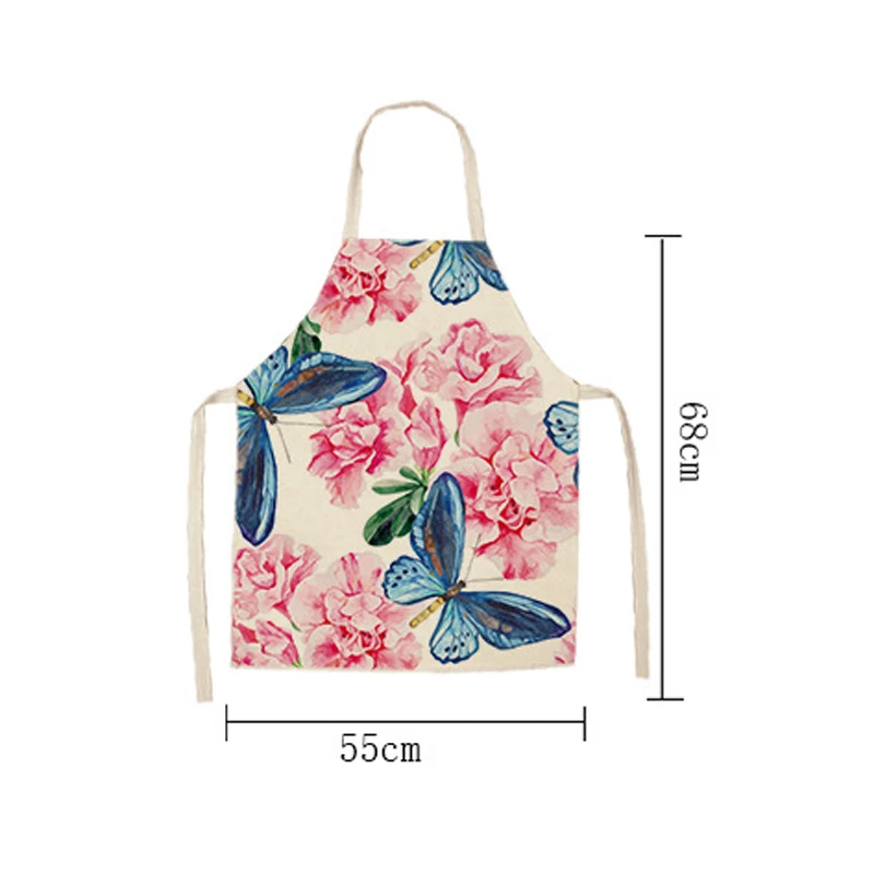 Льняной кухонный фартук для женщин, с изображением бабочек и цветов, японские Мультяшные садовые фартуки, аксессуары для готовки, домашний декор, фартук