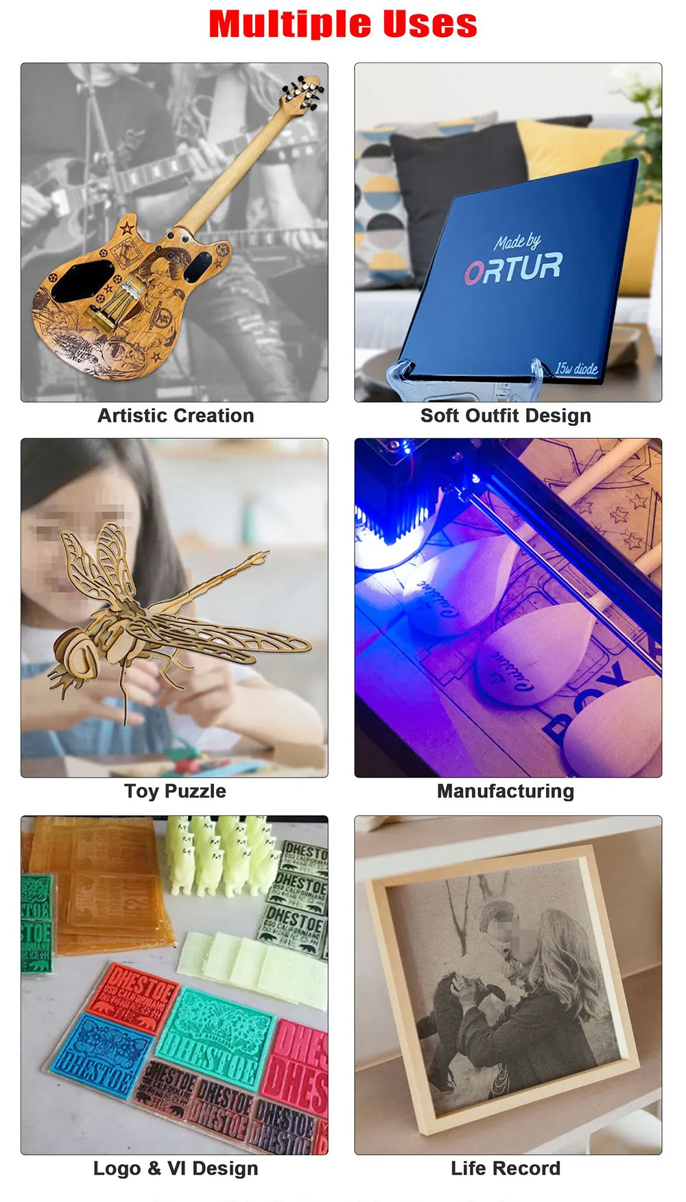 Краткое описание: ● Лазерный мастер 2 - 7 Вт хорошо подходит для гравировки изображений. ● Лазерный мастер 2 - 15 Вт является наиболее экономически эффективным, доступен как для гравировки, так и для резки. ● Лазерный мастер 2 - 20 Вт обладает более высокой мощностью и поддерживает более быструю гравировку и резку. Основные характеристики: ● Специализированная материнская плата с 32 битами MCU Он может обрабатывать 32 инструкции, поддерживать скорость передачи данных до 921600, более мощный! ● Самая продвинутая 32 битная Лазерная гравер прошивка Ortur laser master прошивка, умнее, быстрее, более высокая точность и проще в использовании. ● Диапазон мощности лазера может быть S0 - S1000, по сравнению с 8 битами настольных лазерных гравировальных станков, которые имеют только S0 - S255, Ortur лазерный мастер может контролировать лазерный луч более точно, может даже использовать лазерное устройство высокой мощности, чтобы «нарисовать» изображение на бумаге, О том, что 8 бит высокой мощности лазерные гравировальные инструменты не смог нажать на кнопку. ● Скорость гравировки может достигать 3000 мм/мин. (Если не считать результат лазерной резьбы, скорость движения может достигать 1000 мм/сек.) ● Защита активного положения На материнской плате есть g-сенсор, если машина обнаруживает неавторизованное движение, лазерный луч остановится. ● Защита лазерного луча Если ваша компьютерная система остановлена или USB кабель отключен, привело к тому, что лазерный гравер останавливает движение, лазерный луч остановится, чтобы предотвратить пожар. ● Обнаружение и ограничение длительности экспозиции Если лазерный гравер находится под контролем, но пользователи забывают работать и поддерживать работу лазерного луча, дополнительная безопасность отключится, чехол остановит движение двигателя, чтобы предотвратить пожар. ● LaserGRBL (бесплатное программное обеспечение) поддерживает Windows XP, 7, 8, 10. LaserGRBL является самым популярным программным обеспечением для резьбы в мире, может импортировать различные форматы изображений, вы можете редактировать в PhotoShop, Inkscape, CAD и т. Д., а затем подключаться к граверу с помощью лазерного LaserGRBL для гравировки и резки. ● LightBurn (Платное программное обеспечение, lightburnsoftware.com) поддерживает Windows, Mac OS и Linux. Это самое популярное Платное программное обеспечение для резьбы в мире, очень простое в использовании. ● Этот лазерный гравер поддерживает режим PWM. ● Предварительно собранные детали, просто нужно 10 - 20 минут для установки машины. ● Большая площадь гравировки 400x430 мм. ● Рама из алюминиевого профиля + структурный кабель, прочная структура, плавная работа, привлекательный внешний вид ● Синхронизация механической структуры вала, избегайте синхронизации на двух y-рельсах во время полноскоростной гравировки. Примечание: ● Пожалуйста, носите очки при работе с лазерным гравером. Надевайте защитные очки, чтобы избежать слепоты. ● Пожалуйста, не прикасайтесь к лазерному излучателю рукой, иначе он может сжечь вашу руку. ● Пожалуйста, избегайте сильного воздействия на машину. ● Детям до 14 лет не разрешается использовать этот продукт, и детям старше 14 лет требуется наблюдение за взрослыми. ● Гравировальный светильник не может быть непосредственно применен к любому зеркальному отражающему объекту, что может привести к травме оператора или сжечь лазер. ● Это