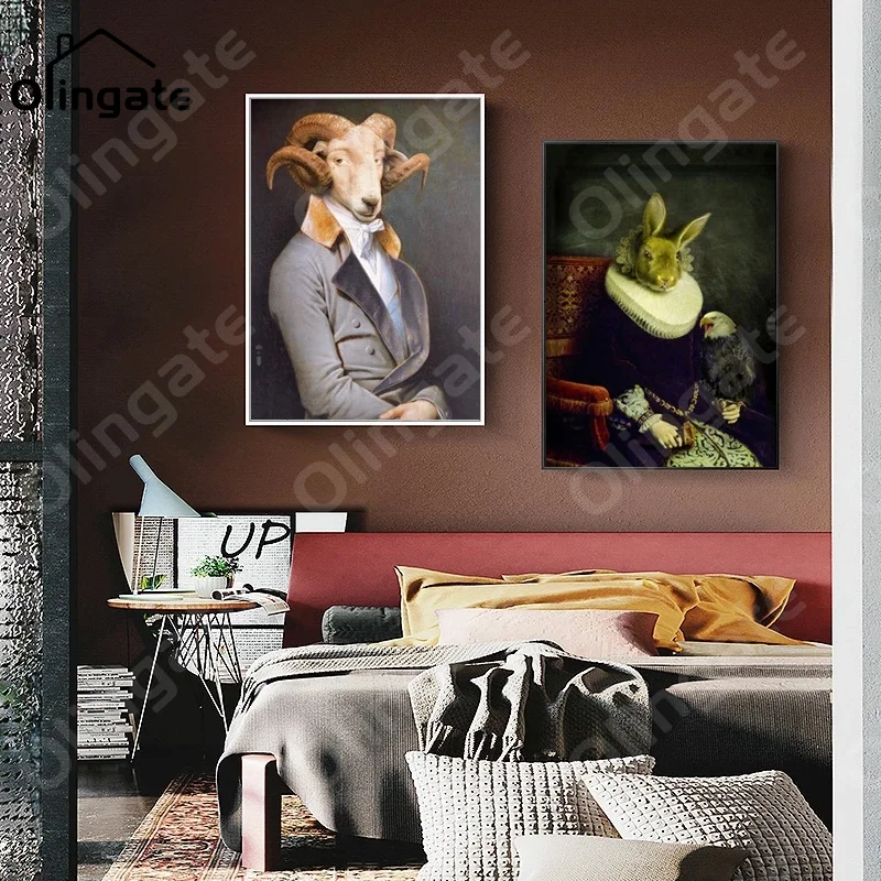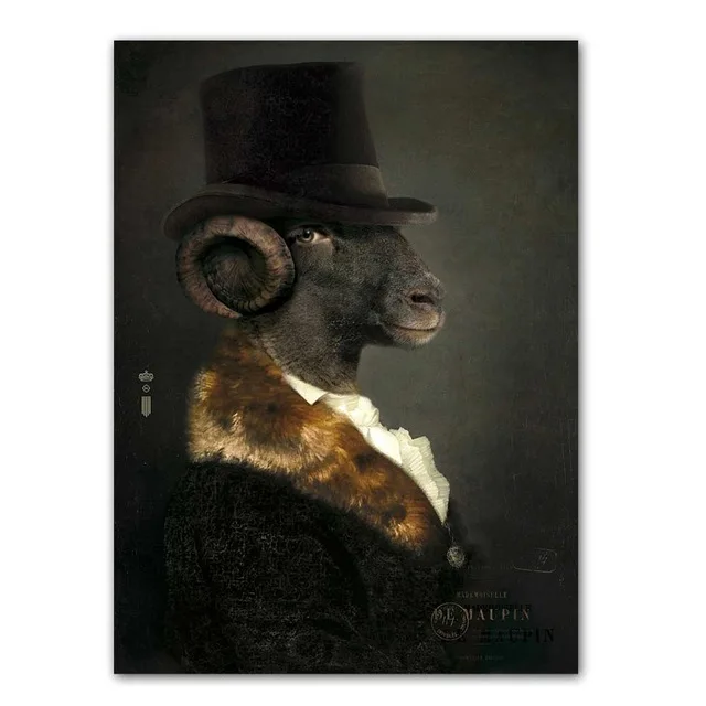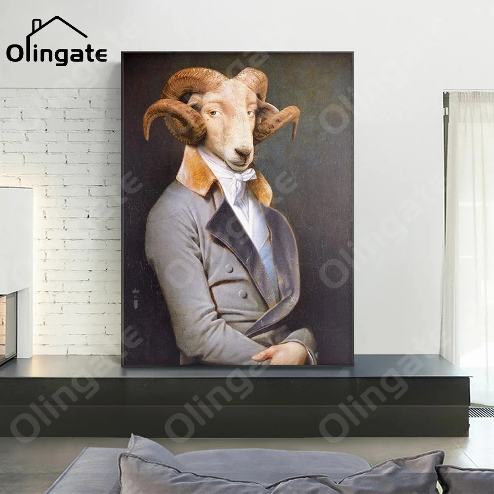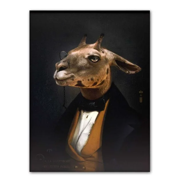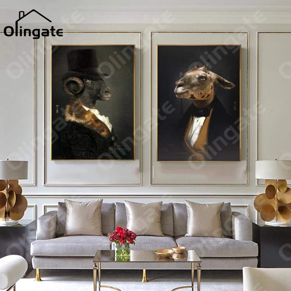 Винтажный настенный постер в виде смешных животных в стиле ретро, ностальгия, джентльмен, цельный холст, Декор для дома, гостиной