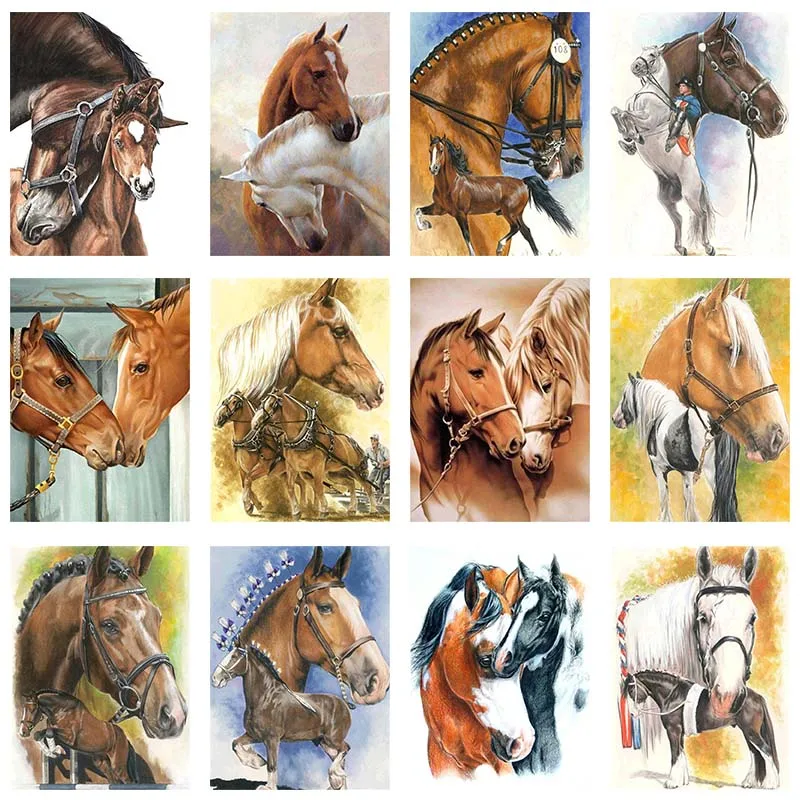 Алмазная живопись, вышивка 5D с изображением лошади, наборы для выш...