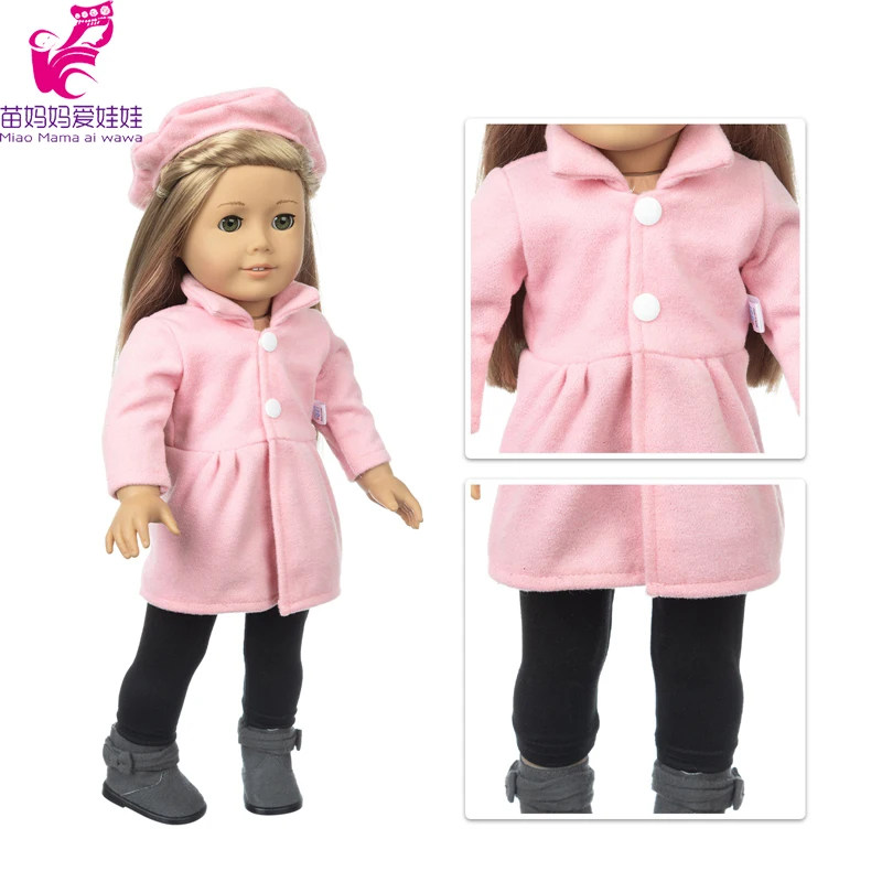 Одежда для кукол 18 дюймов, розовое пальто 43 см, зимнее шерстяное ...