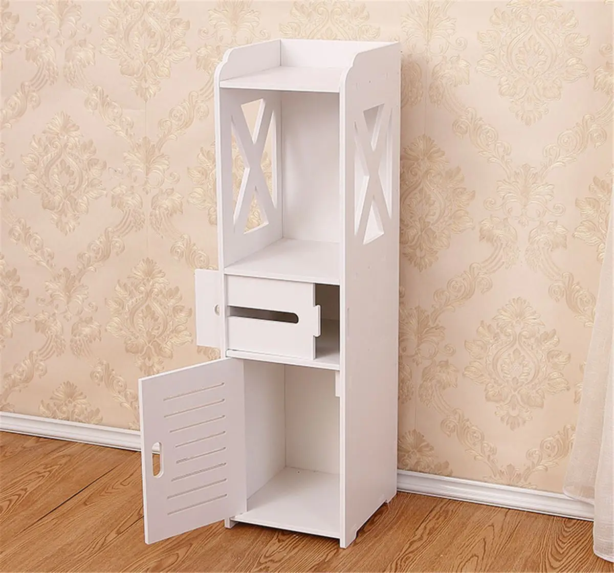 Особенности:● Стильный белый шкафчик для ванной, изготовленный из пластика, водонепроницаемый и долговечный в использовании.● Компактный дизайн идеально подходит для туалетных рулонов и чистящих средств.● Верхний край гладкий и круглый разработан, чтобы избежать ненужных травм случайно.● Средняя часть имеет большую емкость для хранения бумажных полотенец.● Нижний слой имеет достаточно большую секцию для туалетных рулонов и сохраняет их сухими.● Требует сборки дома.
