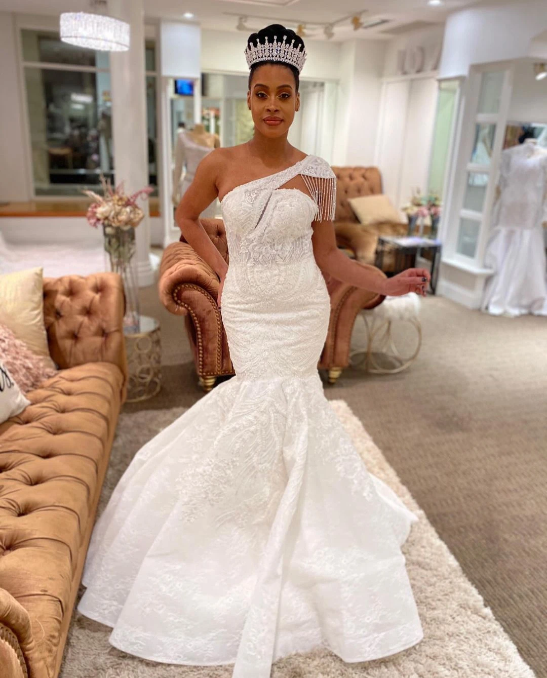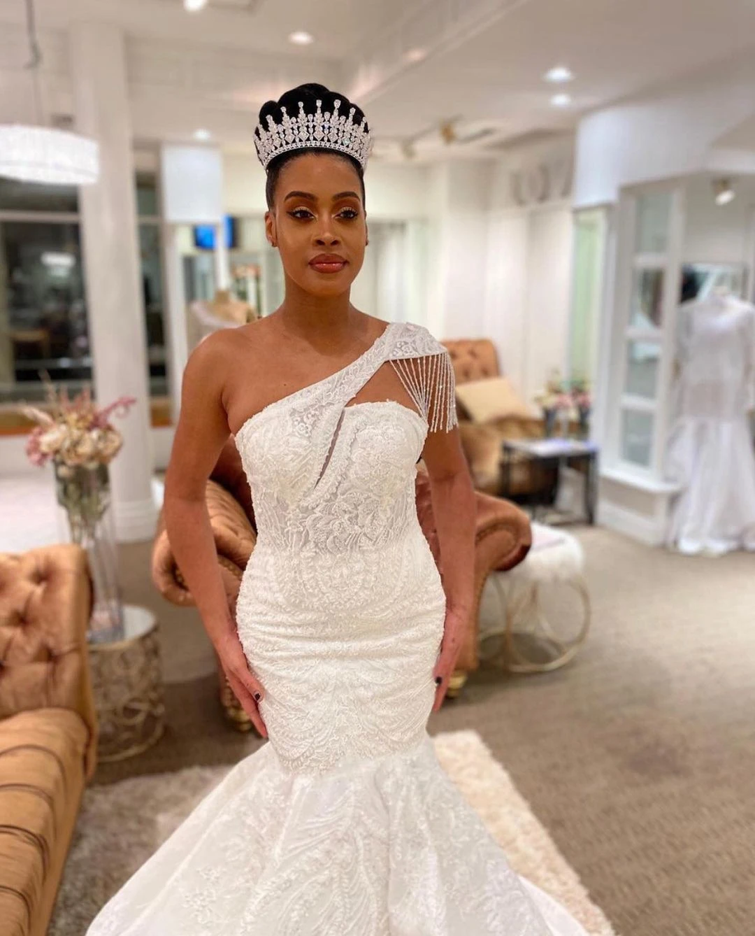 2021 Новое поступление на одно плечо Свадебные платья отделкой: кружево и бахрома; Пояс с кисточками из бисера размера плюс с юбкой-годе для невесты свадебное платье без рукавов