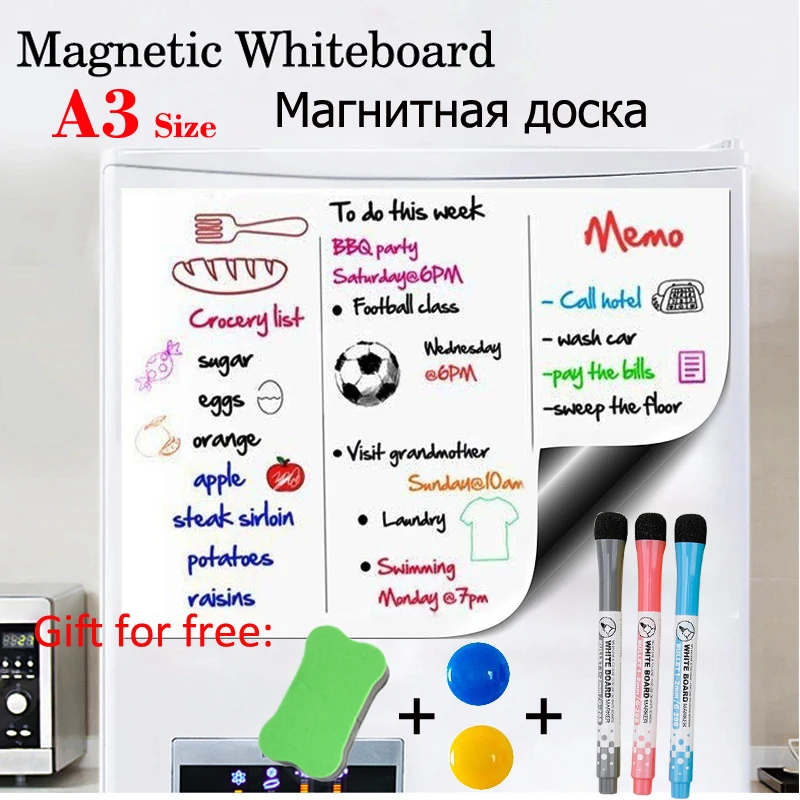 Магнитная доска Размера A3, доска для сухого стирания, белая доска, наклейка на холодильник, Кухонное меню, планировщик, сообщения, календарь, школьная доска для объявлений