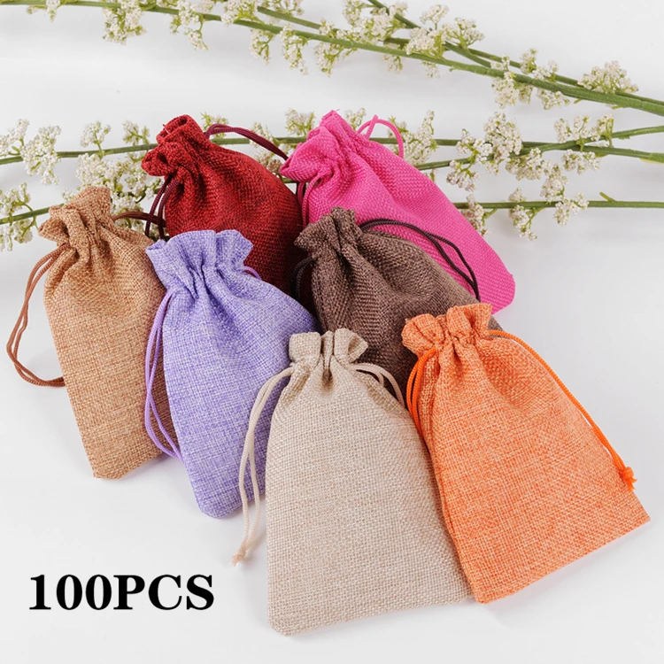 100 шт/много размеров на завязках льняные сумки ювелирные изделия конфеты печенье упаковка новый год свадьба день рождения подарок сумка для хранения