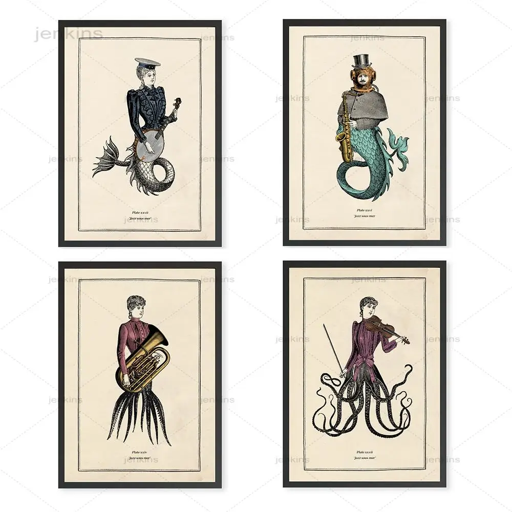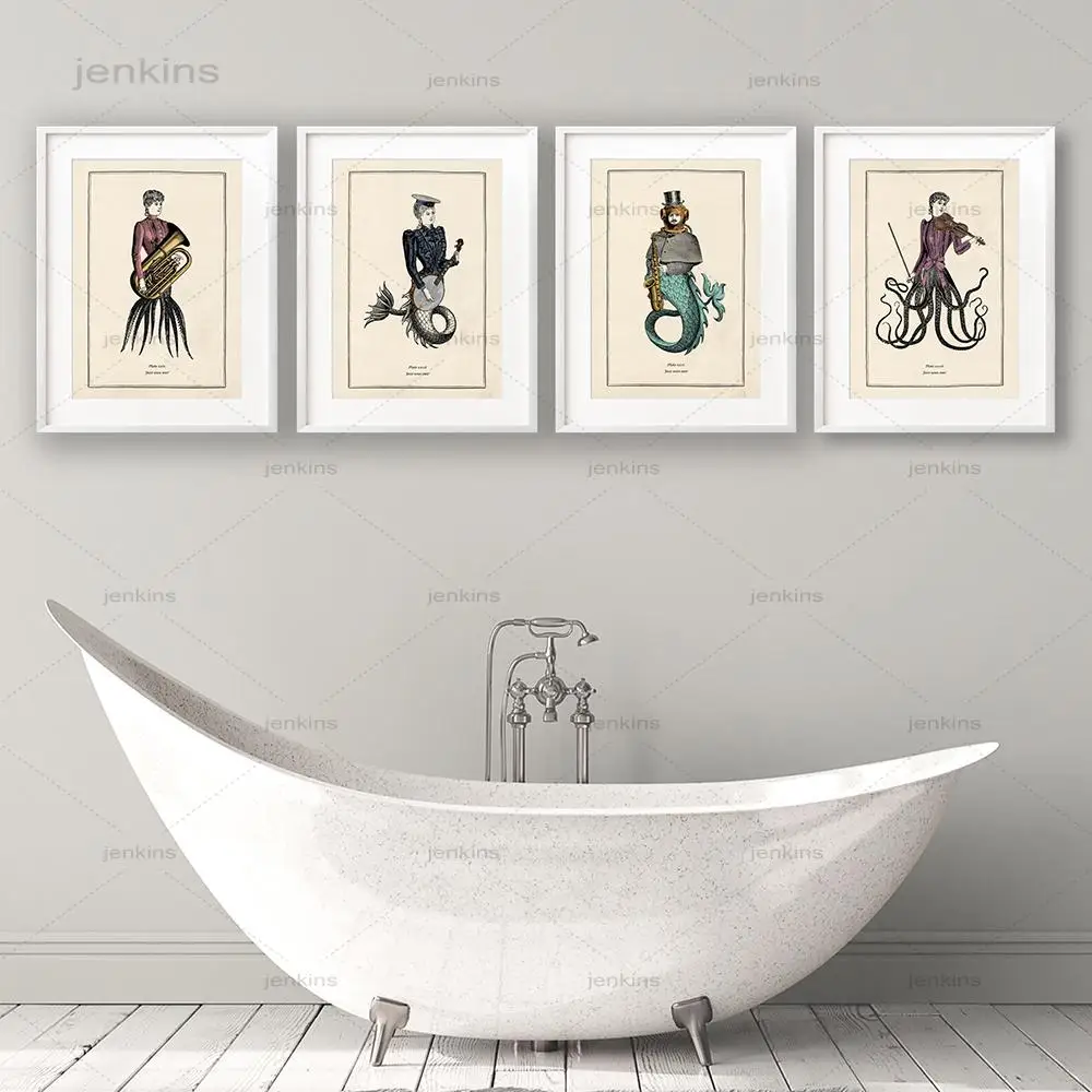 Винтажная забавная Настенная картина в виде осьминога в стиле унитаза, плакат в стиле ретро, готика, стимпанк, настенные картины для ванной, холст, картина, декор