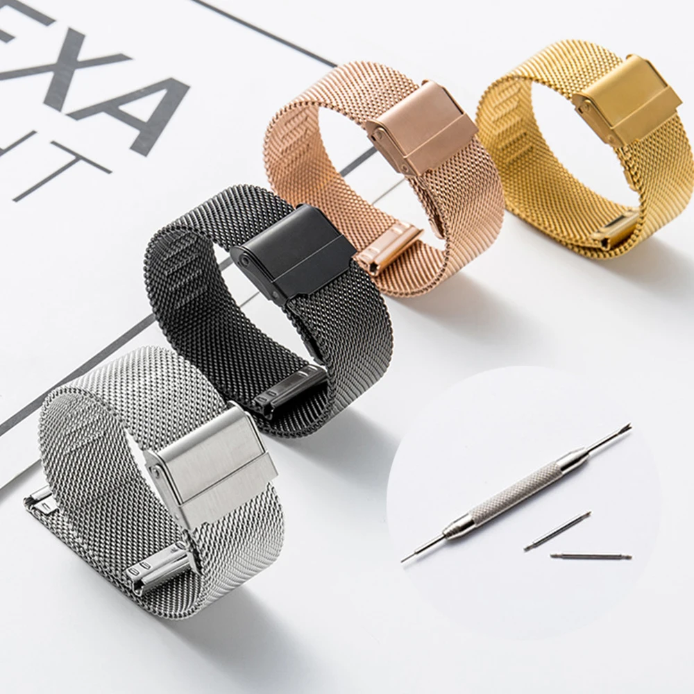 Универсальный ремешок для часов с Миланской петлей, 12 мм, 14 мм, 16 мм, 18 мм, 20 мм, 22 мм, металлический браслет из нержавеющей стали, аксессуары для DW