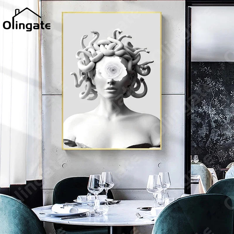 Рисунок на холсте, постер с изображением граффити, искусство на стене, изображения с изображением лица Медузы для украшения гостиной