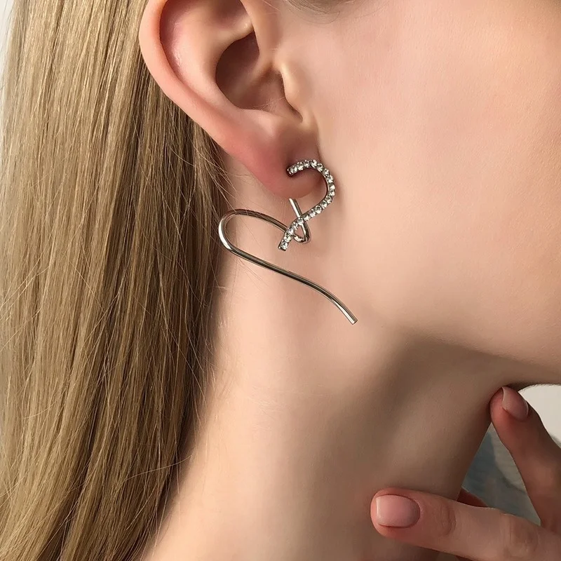 Серьги женские, инкрустированные кристаллами, в форме сердца, 2021