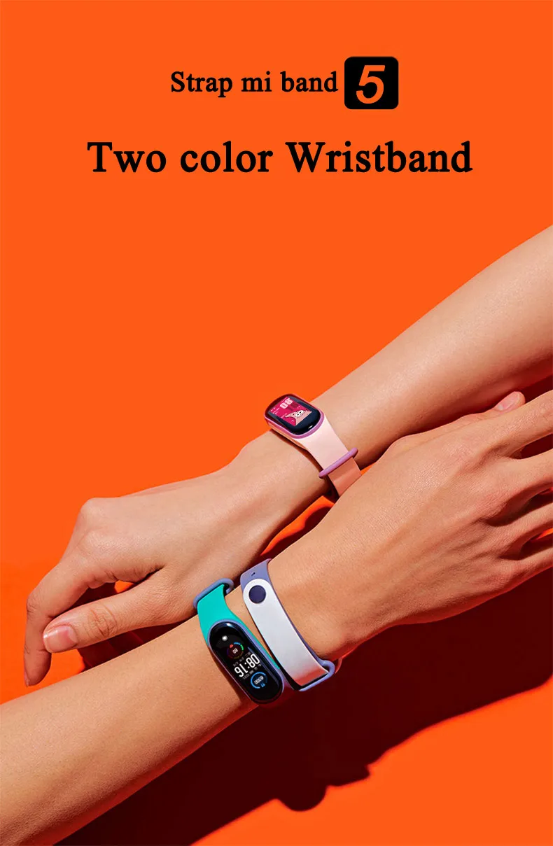 Силиконовый ремешок для Xiaomi Mi Band 6 5, двухцветный ремешок, сп...