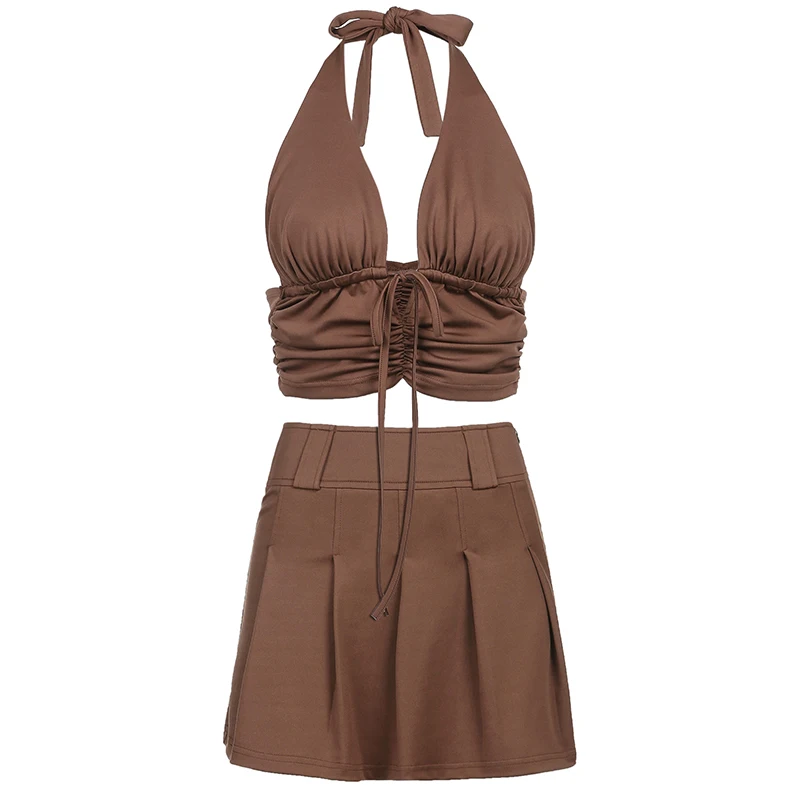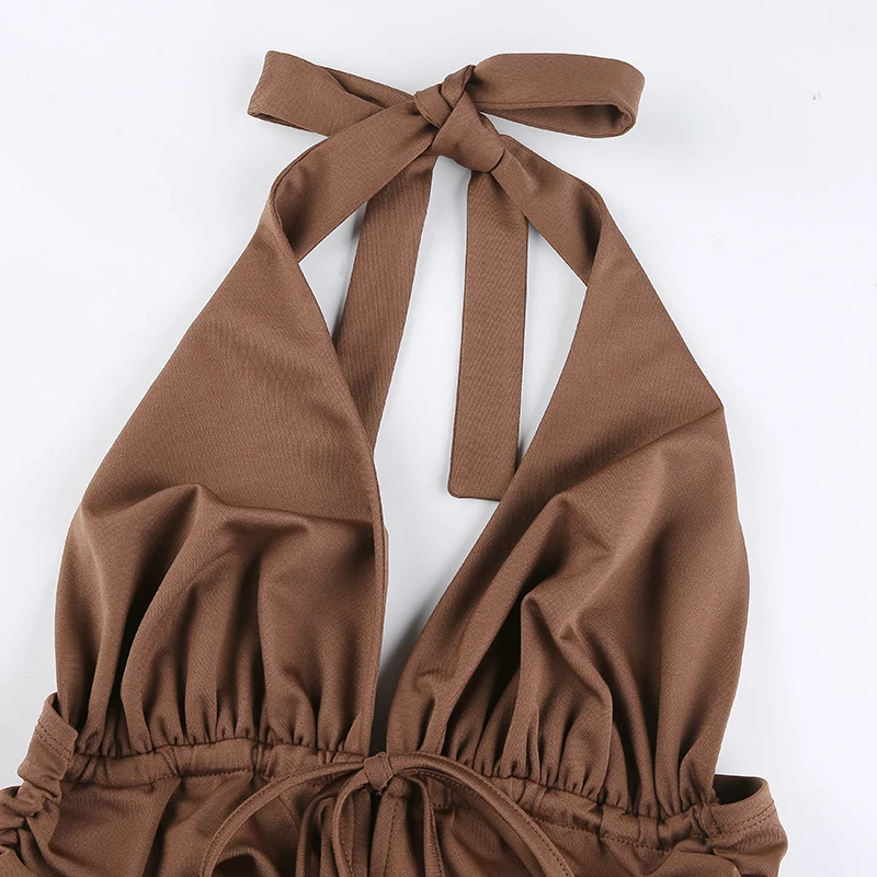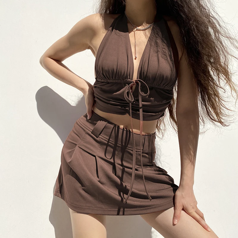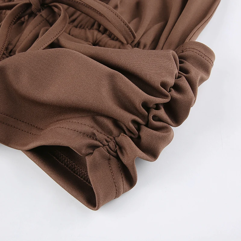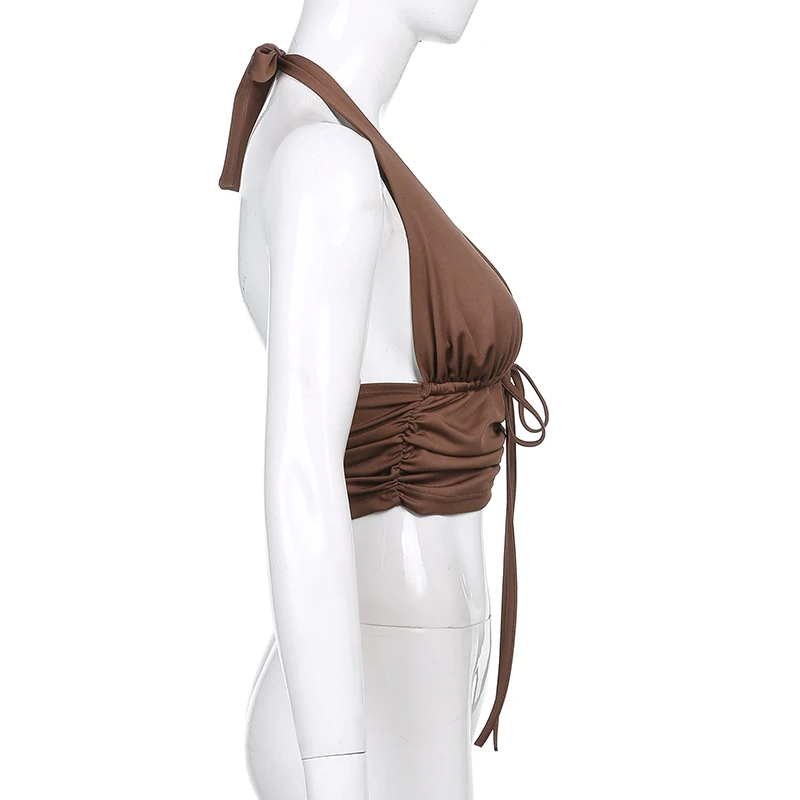 Кроп-топ Y2K с рюшами и завязками, коричневая майка в стиле Харадзюку, Милая футболка с открытой спиной, Пляжный свитшот для вечеринки