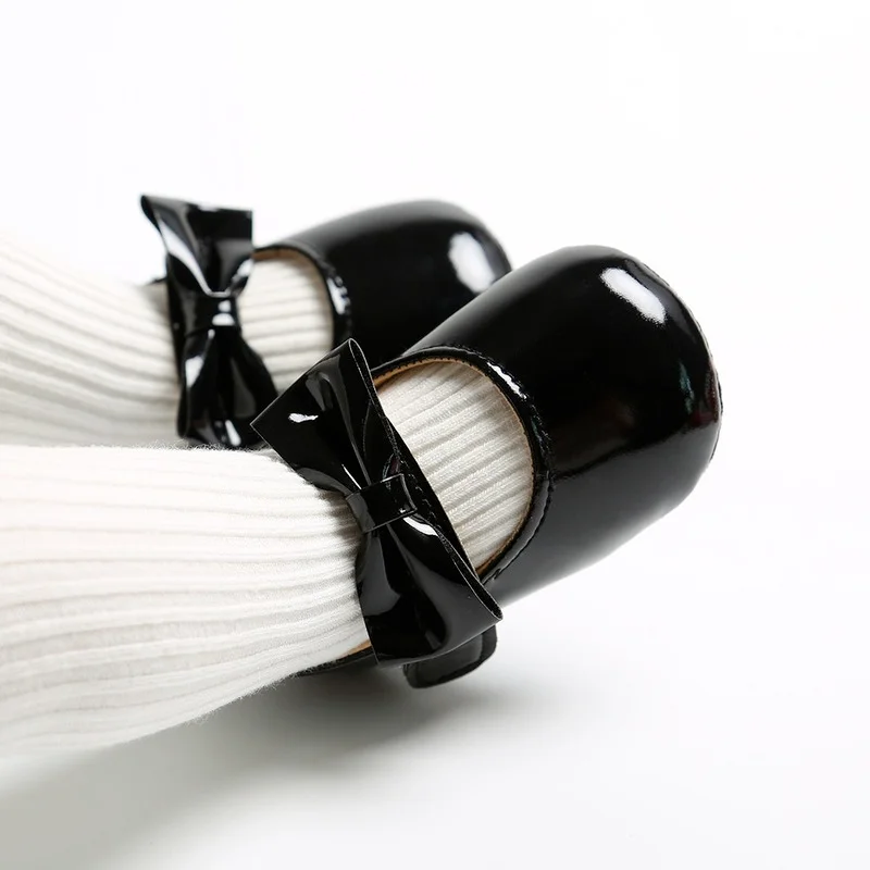 Ботинки KIDSUN для новорожденных, Классические ботинки принцессы из полиуретана с бантиком, Нескользящие, детская обувь для девочек для первых шагов, для детской кроватки
