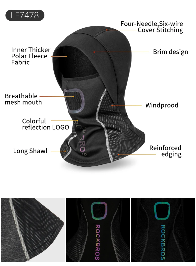 Балаклава ROCKBROS, зимняя, лыжная, маска для лица, велосипедная, лыжная, Беговая, Спортивная, тренировочная, защита от ветра, велосипедный аксессуар