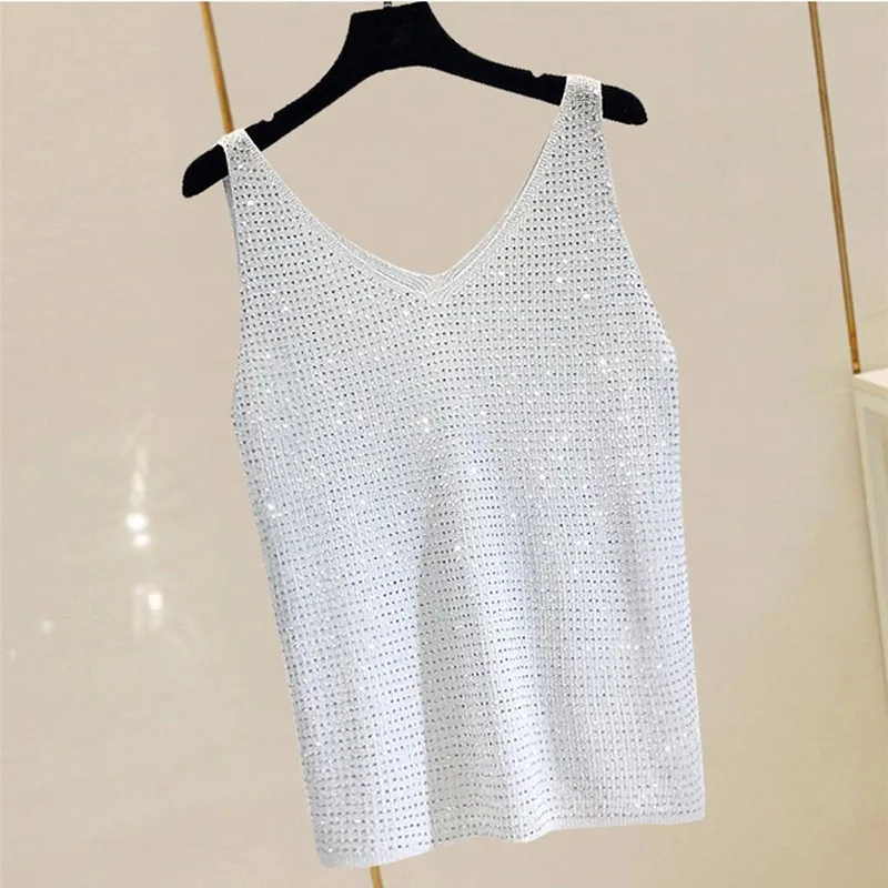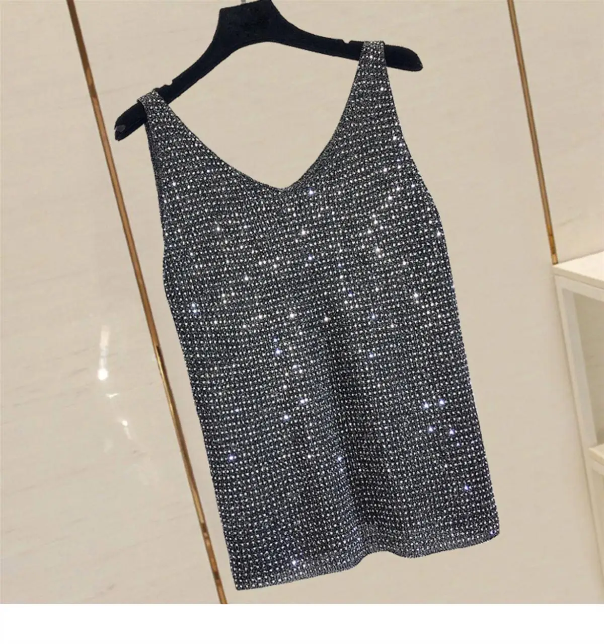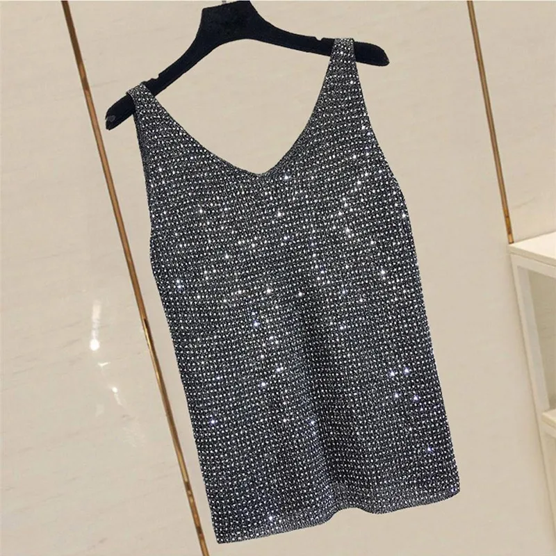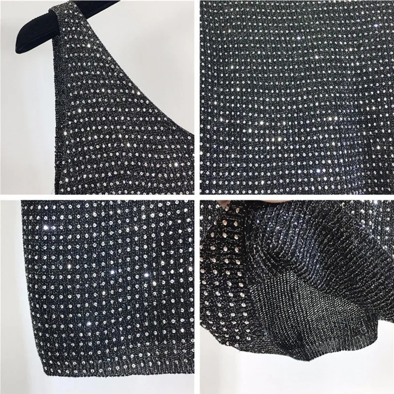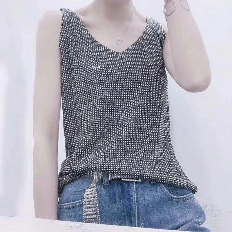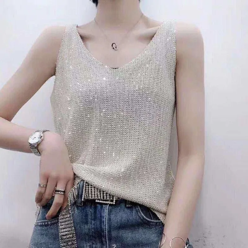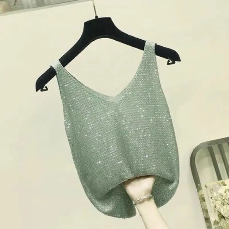 Женский топ без рукавов, майка с блестками, короткий летний топ большого размера, трикотажная кофточка