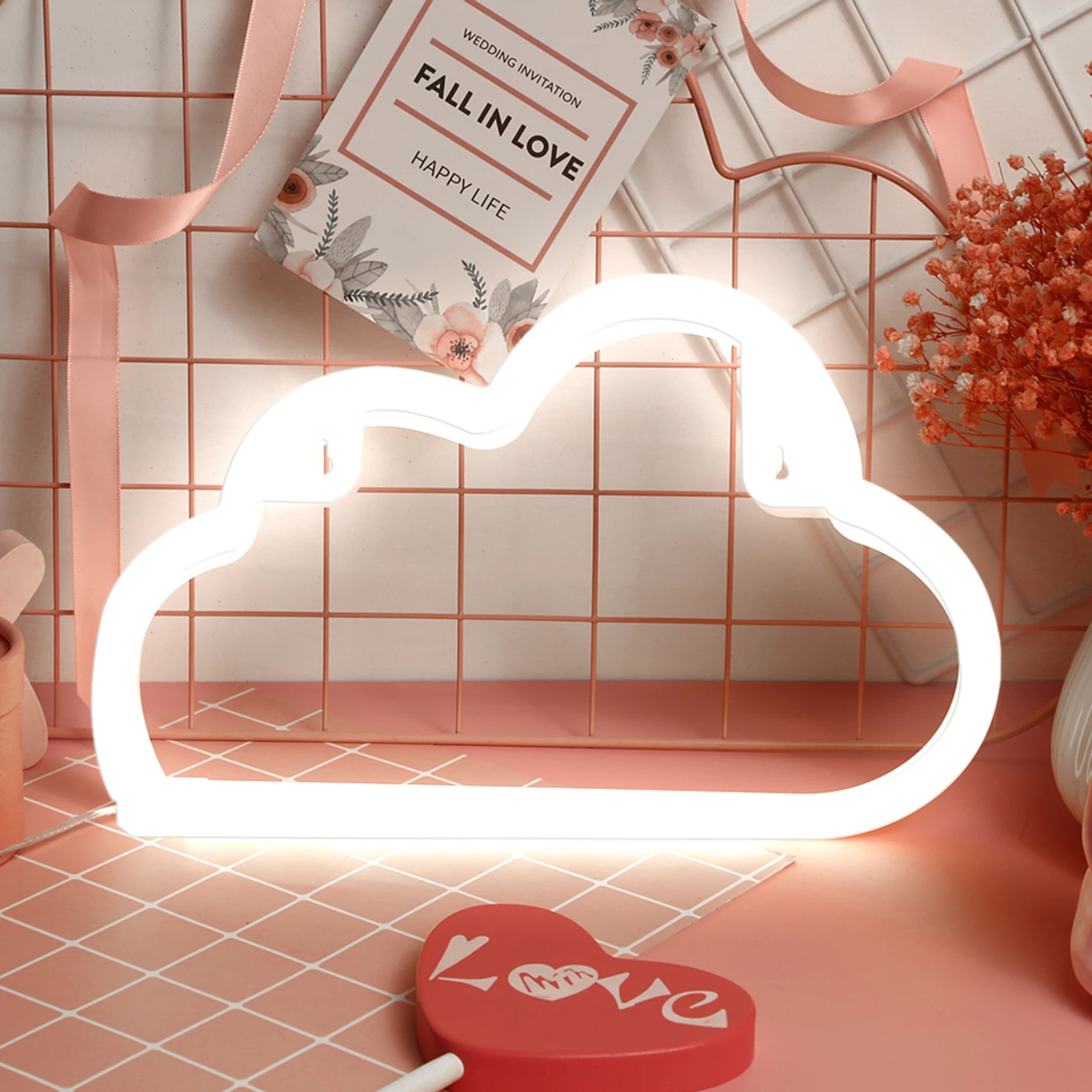Неоновые облачные вывески для настенного декора, декоративная светодиодная лампа с питанием от USB или аккумулятора светодиодный девочек, детской комнаты, спальни, вечеринки в честь Дня Рождения