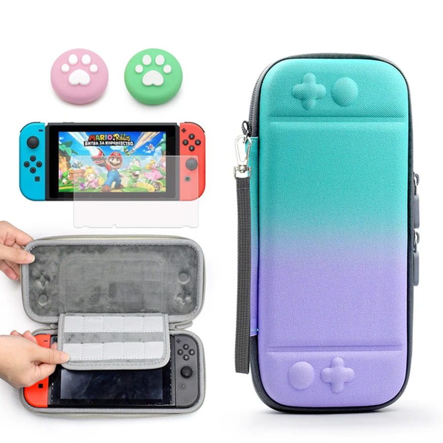 4 в 1 защитный чехол для переноски NS сумка для хранения Набор для консоли Nintendo Аксессуары стеклянная пленка для экрана с захватом большого пальца