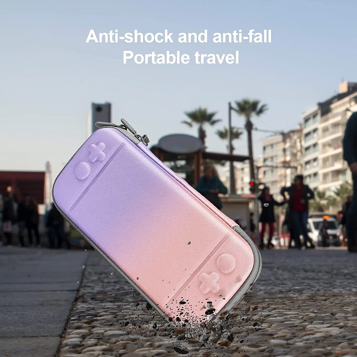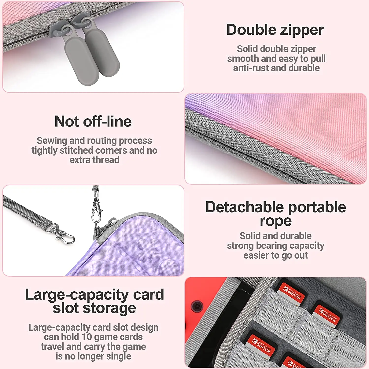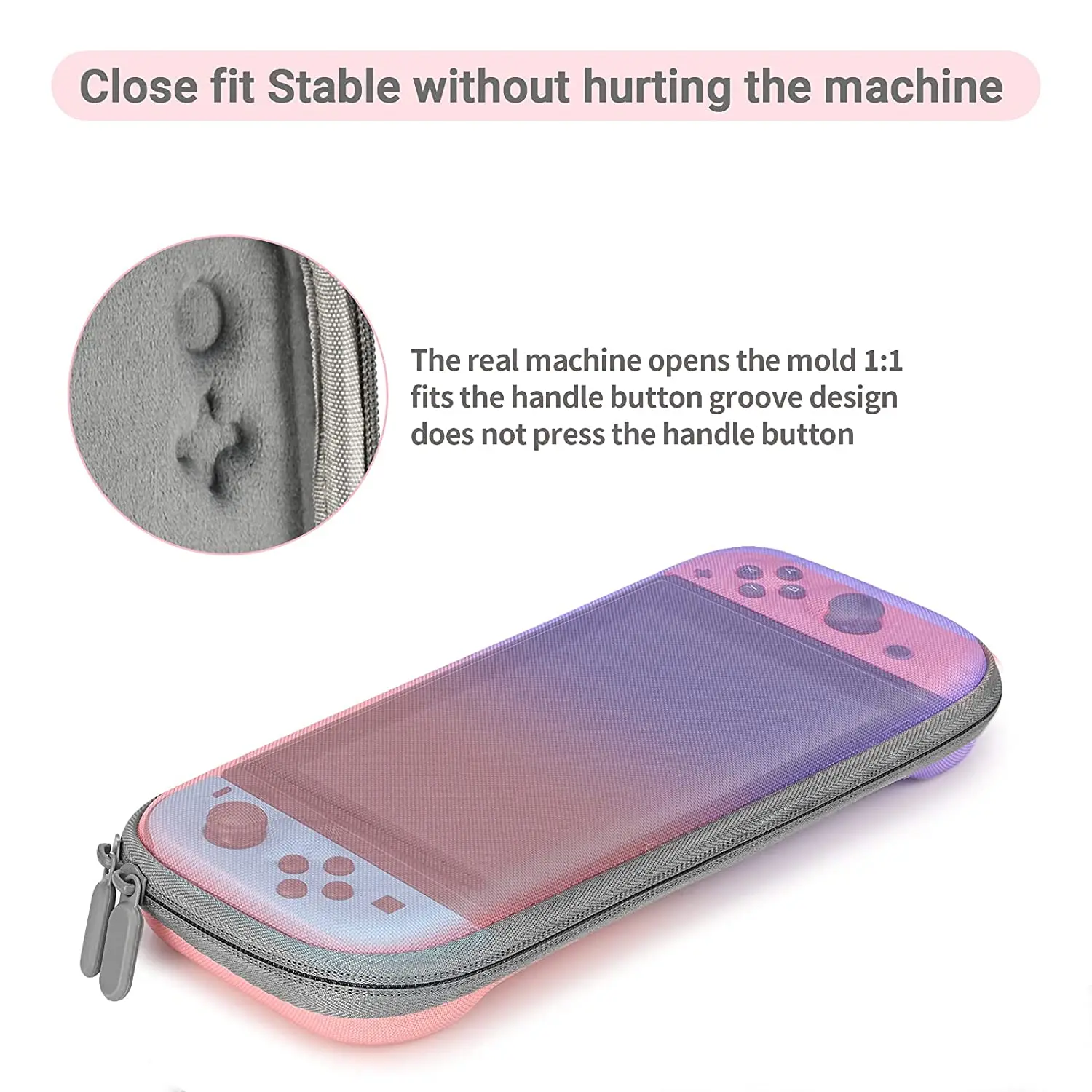 Особенности:1. Сумка с высоким качеством 2. Защитите консоль от ударов и царапин3. Конструкция для консоли переключения и ударопрочный4. Включает в себя слоты для 10 встроенных держателей игровых карт, вы можете взять ваши любимые игры, куда бы вы ни отправились5. Внутренний слой изготовлен из мягкого, текстурированного фланелета, обеспечивает дополнительную защиту ближе всего к вашему устройствуПосылка:1 * сумка для хранения Nintendo Switch1 * Защита экрана для Nintendo Switch2 * ручки-наклейки для большого пальца