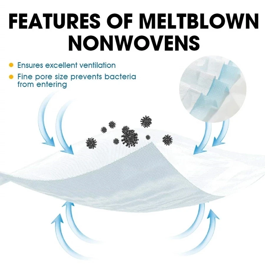 50 шт., одноразовые маски для лица с фильтром, 3 слоя