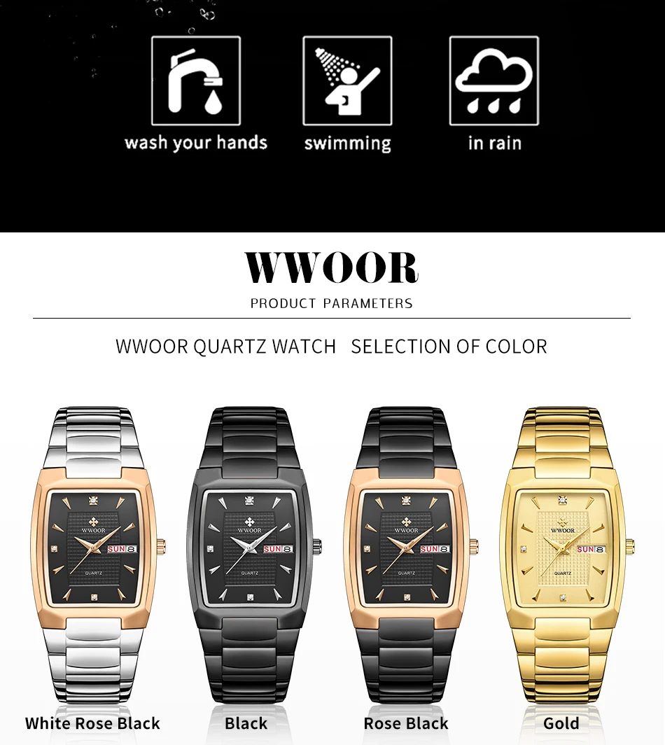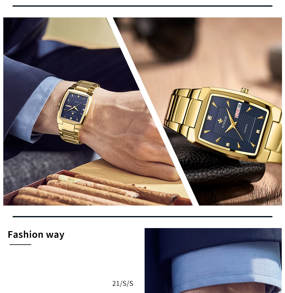 Мужские часы WWOOR 2021, деловые часы для мужчин, военные, водонепроницаемые, с отображением недели, кварцевые часы, Благородные Золотые мужские часы