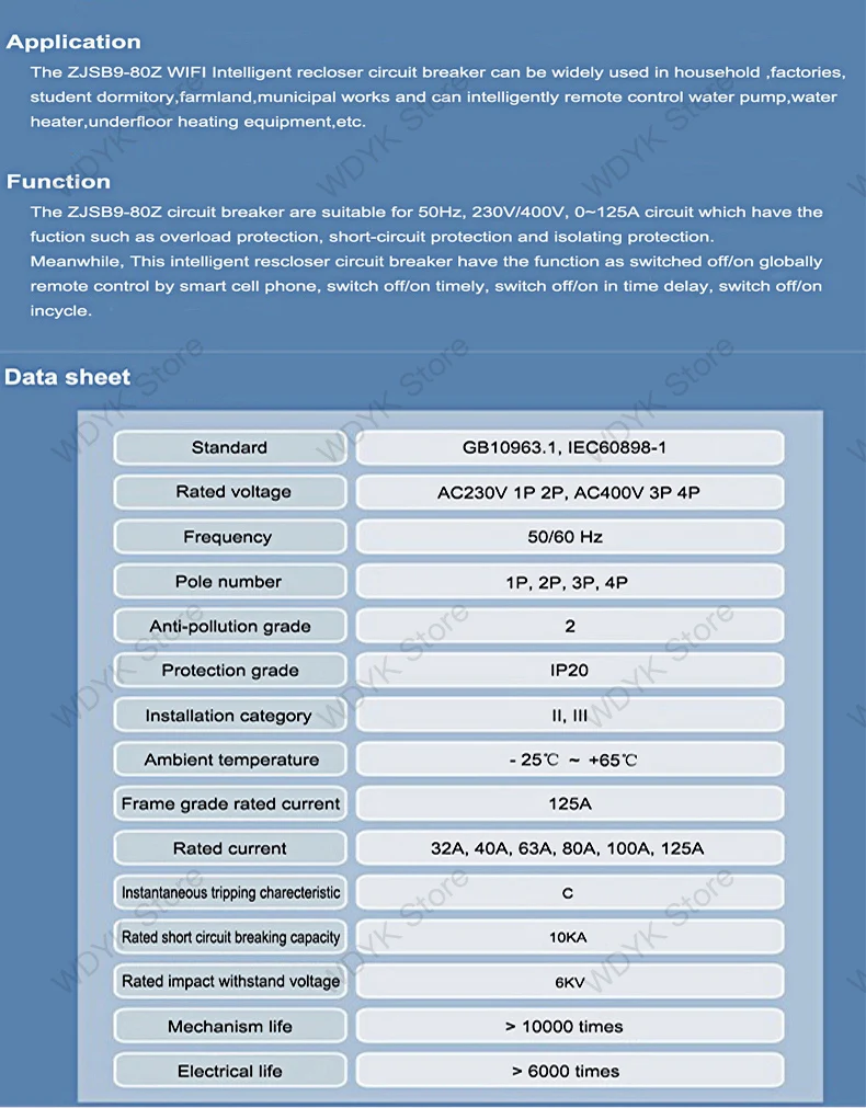 Автоматический выключатель 1P 16 А-100 А с поддержкой Wi-Fi