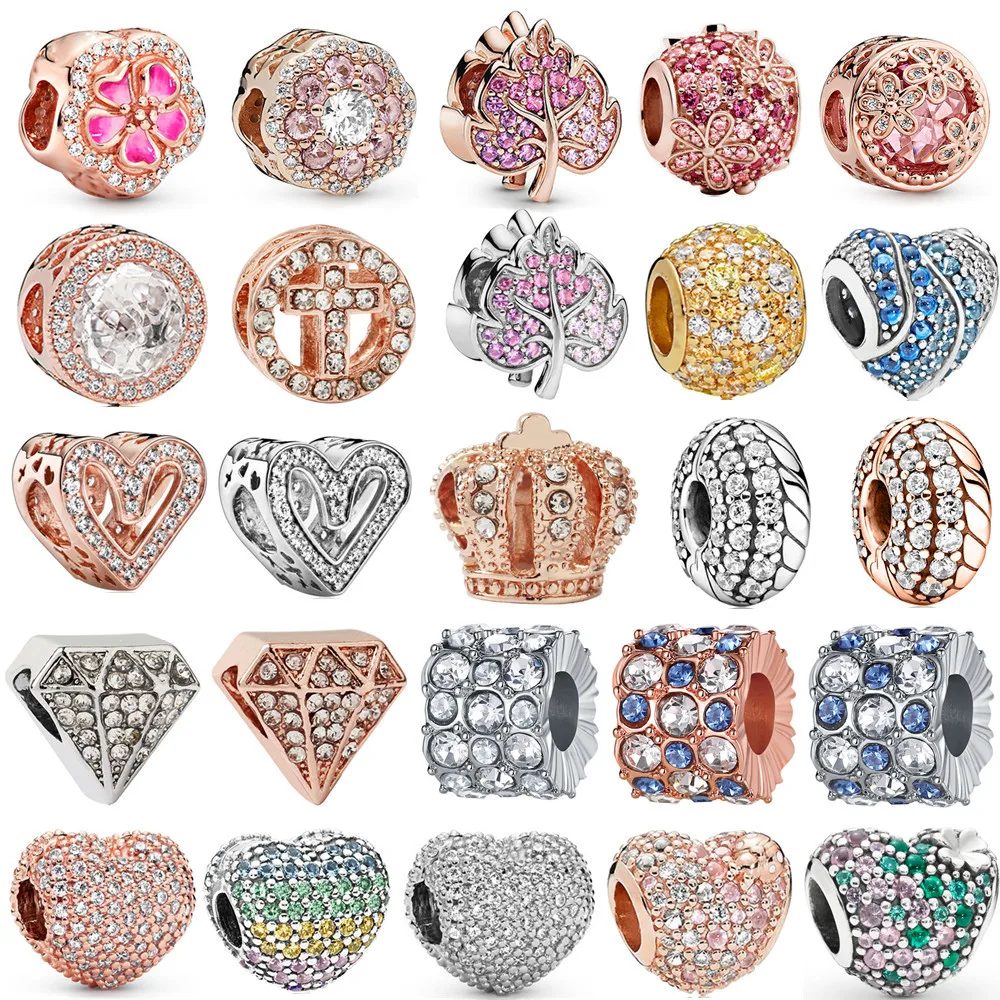 Новые блестящие бусины Стразы с короной и сердцем, подходят для оригинального браслета Pandora с шармами, Европейский подарок для изготовления ювелирных изделий