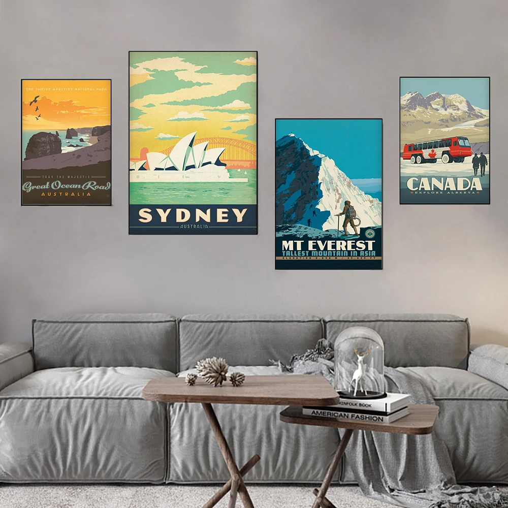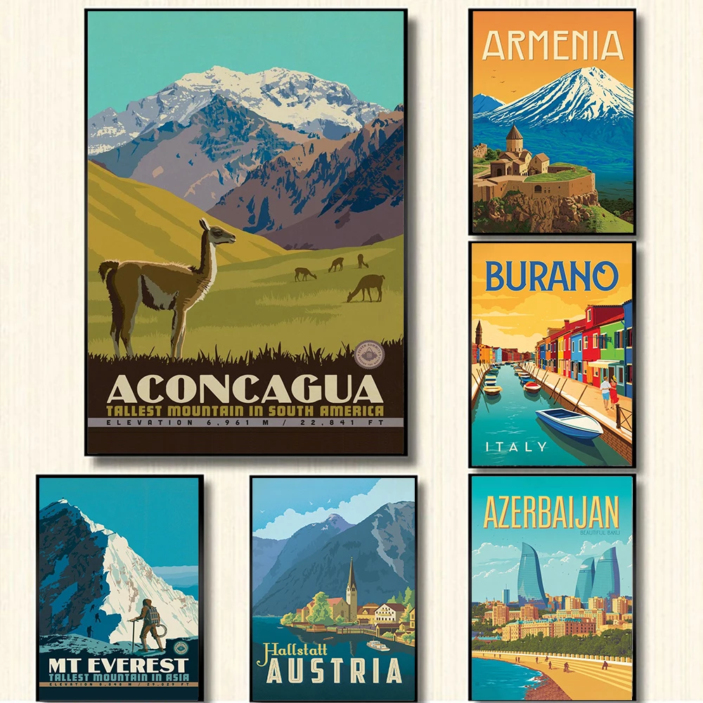 Картина на холсте с изображением известных туристических достопримечательностей, ретро, ВИНТАЖНЫЙ ПЛАКАТ год, настенные картины для декора гостиной