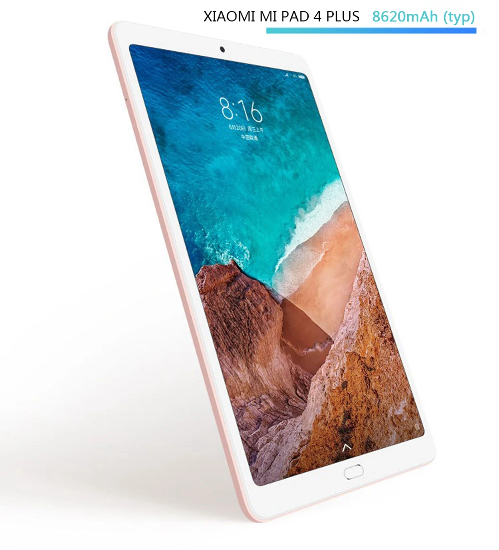 Xiaomi Mi Pad 4 Plus Экран: 10,1 дюймов, 1920*1200 FHD экран, 16:10 Экран соотношение Процессор: Qualcomm 660 AIE ОЗУ: 4 Гб ROM: 64 Гб/128 ГБ Камера: Передняя 5 Мп./задняя 13 МП (поддержка PDAF фраза фокус) Аккумулятор: 8620 мАч (поддержка 5 В/2 а) Сеть: WIFI/4G LTE версия Навигация и позиционирование: версия WiFi/не поддерживает навигационные услуги;/версия 4G LTE/GPS · ГЛОНАСС · Beidou Операционная система: MIUI 9 (база на Andorid 8,1) Размер: 149,08*245,6*7,99 мм (485 г) Цвет: черный/золотой (металлический корпус) Посылка: MI pad 4 plus/адаптер питания/кабель USB Type-C/Pin/Руководство по запуску/три ваучера