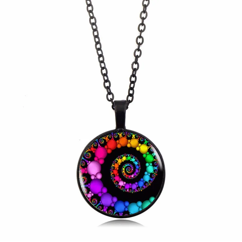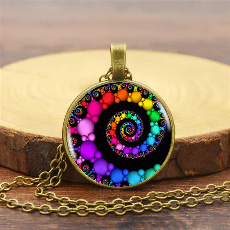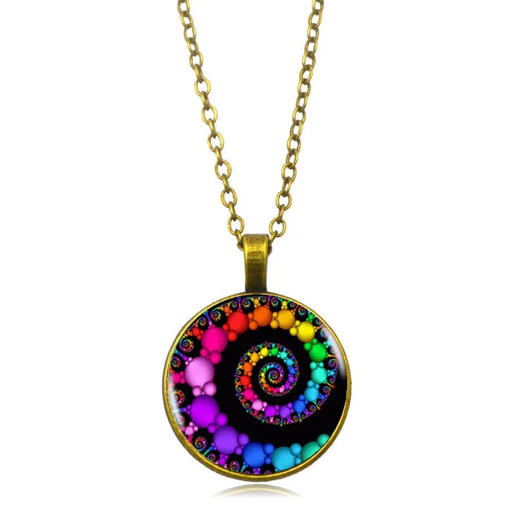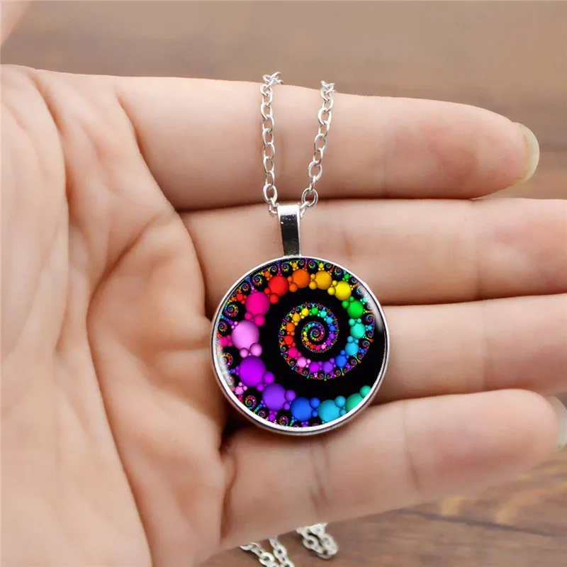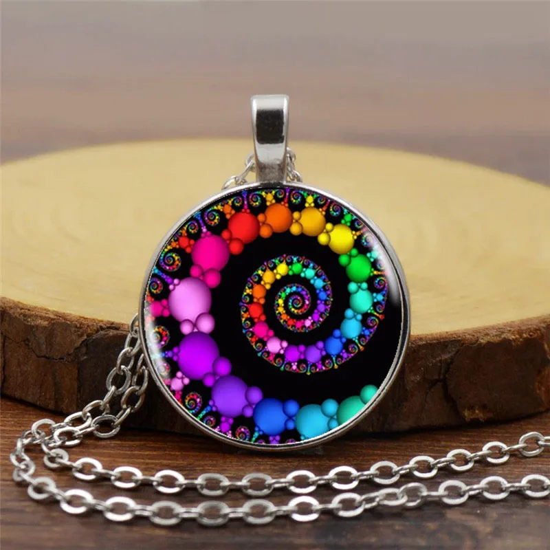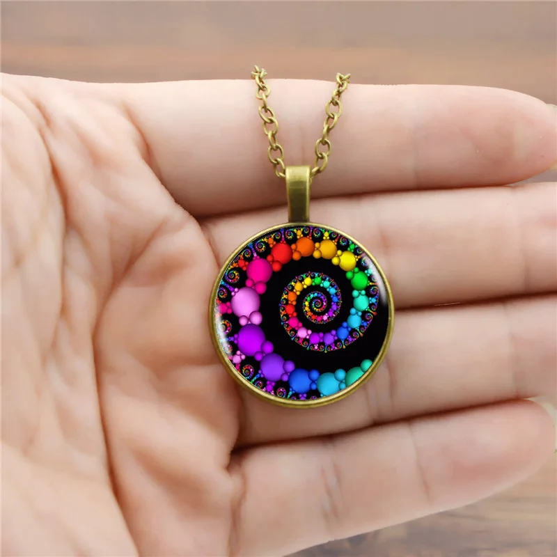 Спираль Фибоначчи, кулон, фрактальные ожерелья, подвески, сверкающие, стеклянный купол, ожерелье, Священная геометрия, искусство, картина, ювелирные изделия в подарок