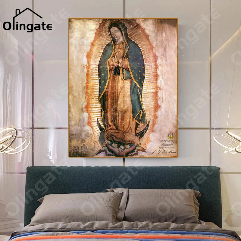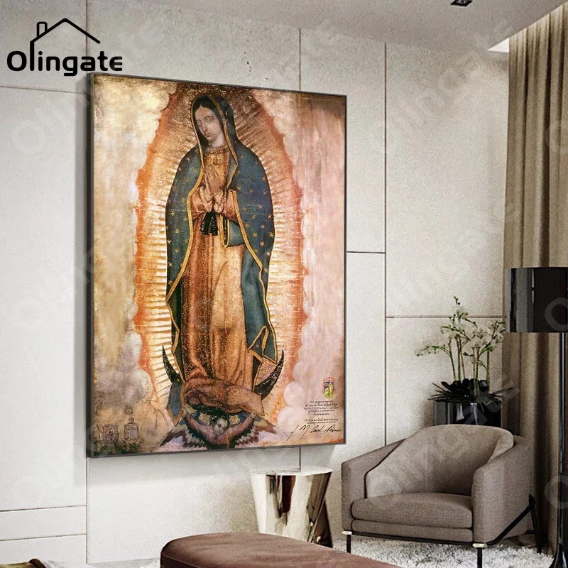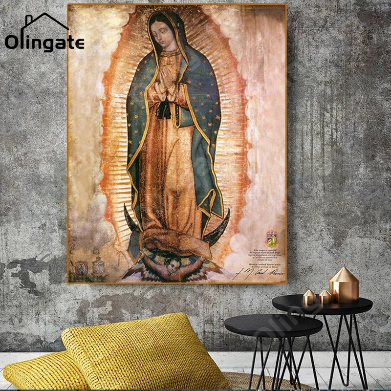 Мексиканская Дева Мария, Картина на холсте, винтажный портрет, Женский настенный художественный принт, цельный холщовый постер, украшение для дома и комнаты